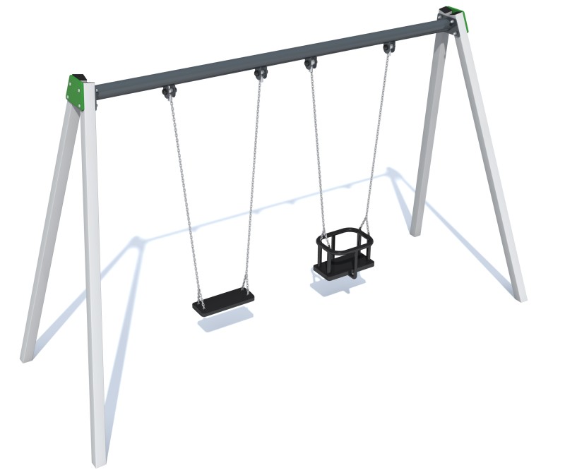 Gungställning Sväng Orion 3 för offentlig utemiljö med fokus på säker användning, robust konstruktion och lång livslängd vid daglig drift. Material: galvaniserat stål.