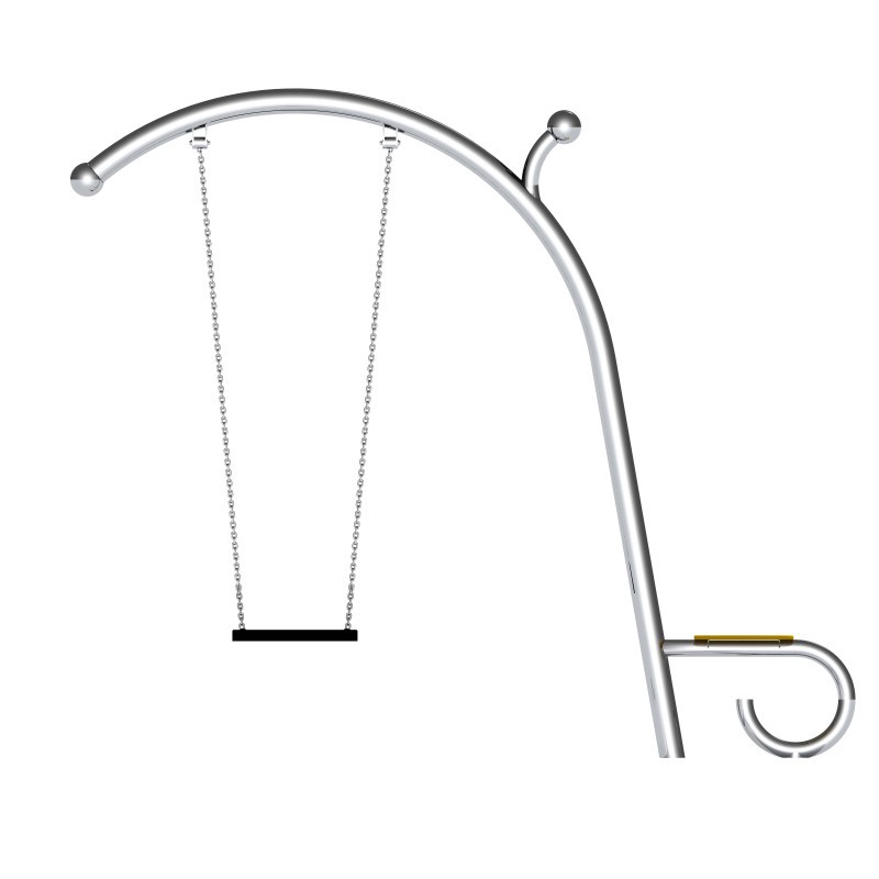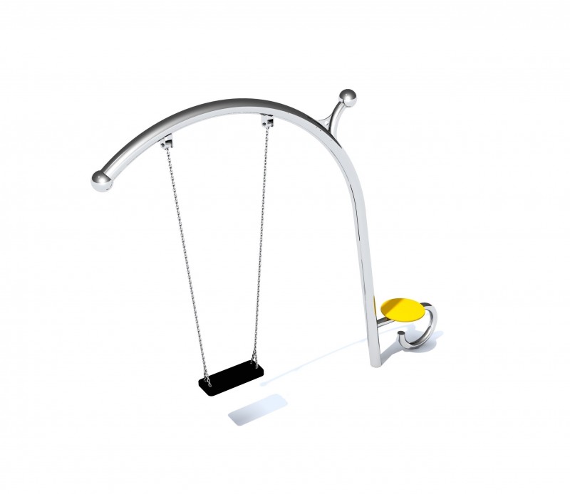 Gungställning Sväng VERGO 1 för offentlig utemiljö med fokus på säker användning, robust konstruktion och lång livslängd vid daglig drift. Material: rostfritt stål och pulverlackerat stål.