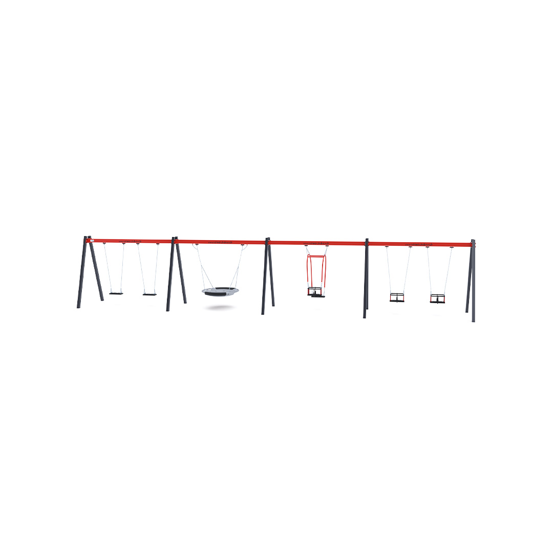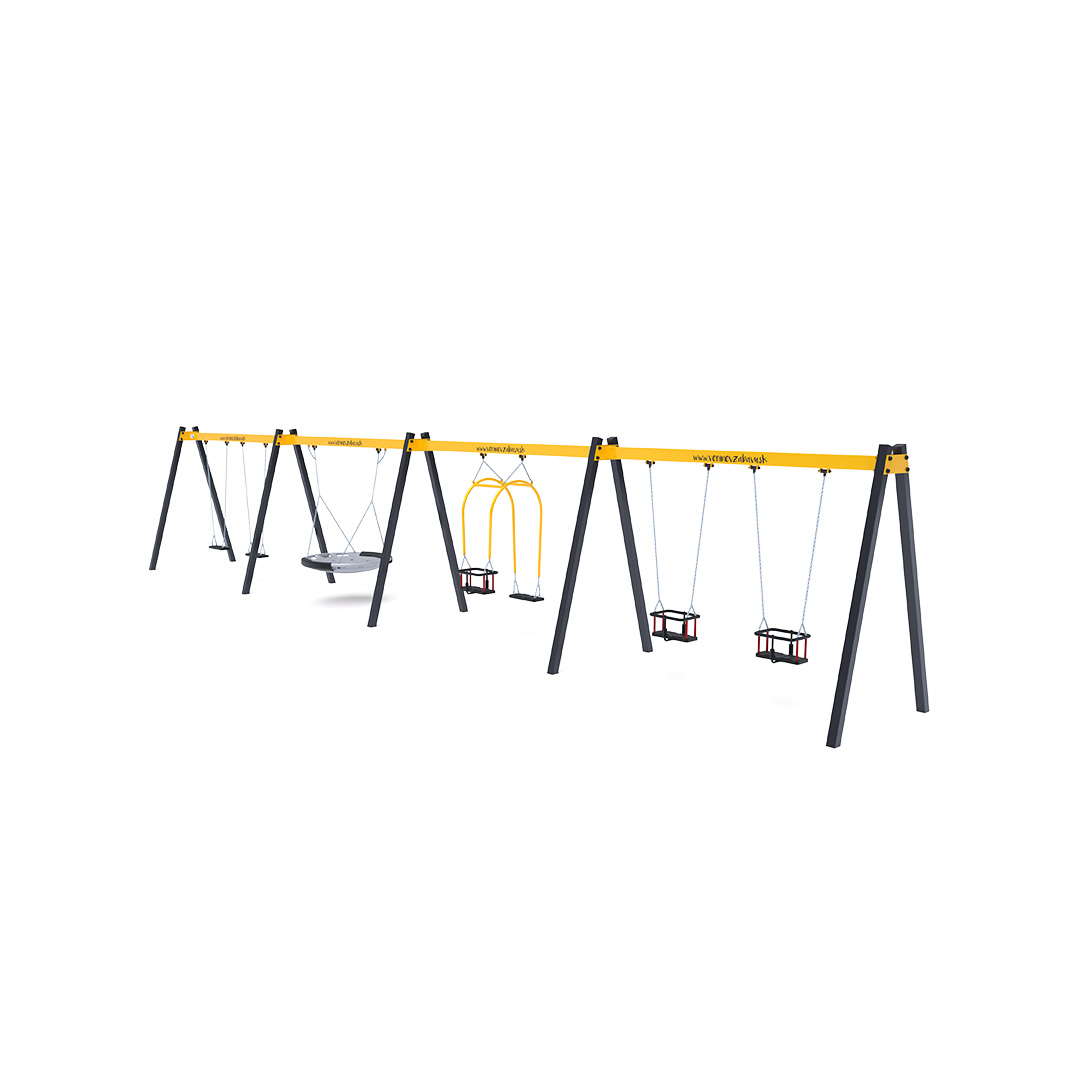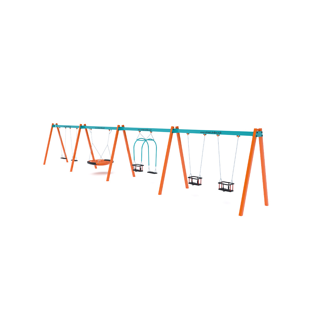 Gungställning Tieva är en gungställning avsedd för offentlig utomhusmiljö såsom lekplatser, skolor, förskolor, parker eller gemensamma gårdsmiljöer. Produkten är utförd i hot-dip galvanized steel, hdpe plastics, rubber, stainless steel fasteners, vilket ger en tålig konstruktion för daglig användning utomhus. Elementets mått är 12.44 x 1.6 x 2.3 meter. Rekommenderad ålderskategori är from 3 to 14 years. Fri fallhöjd är 1.50 meter. Säkerhetsytan är 12.2 x 7.5 meter.