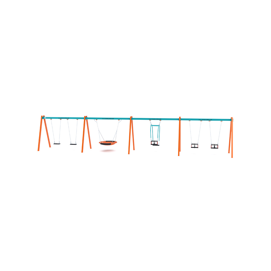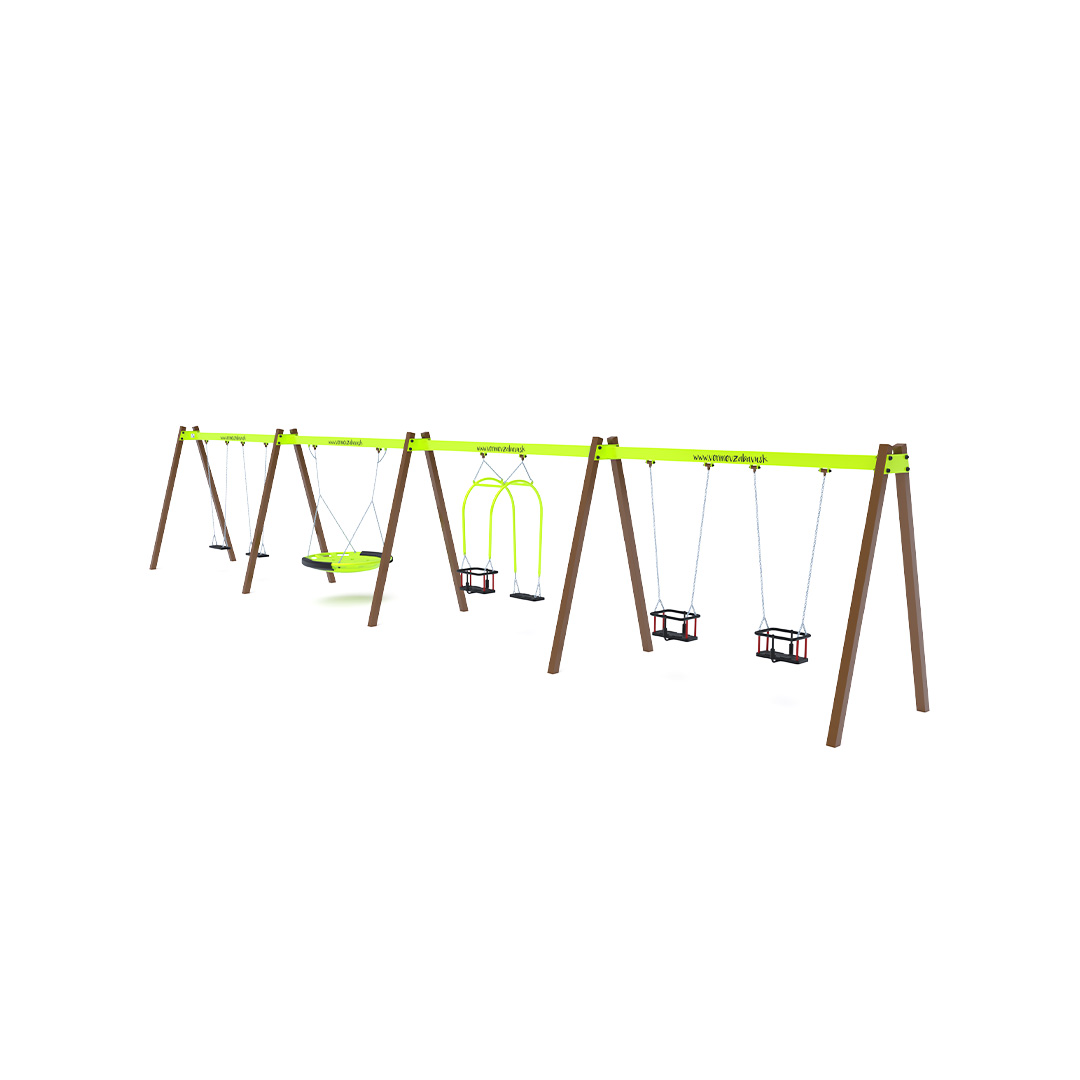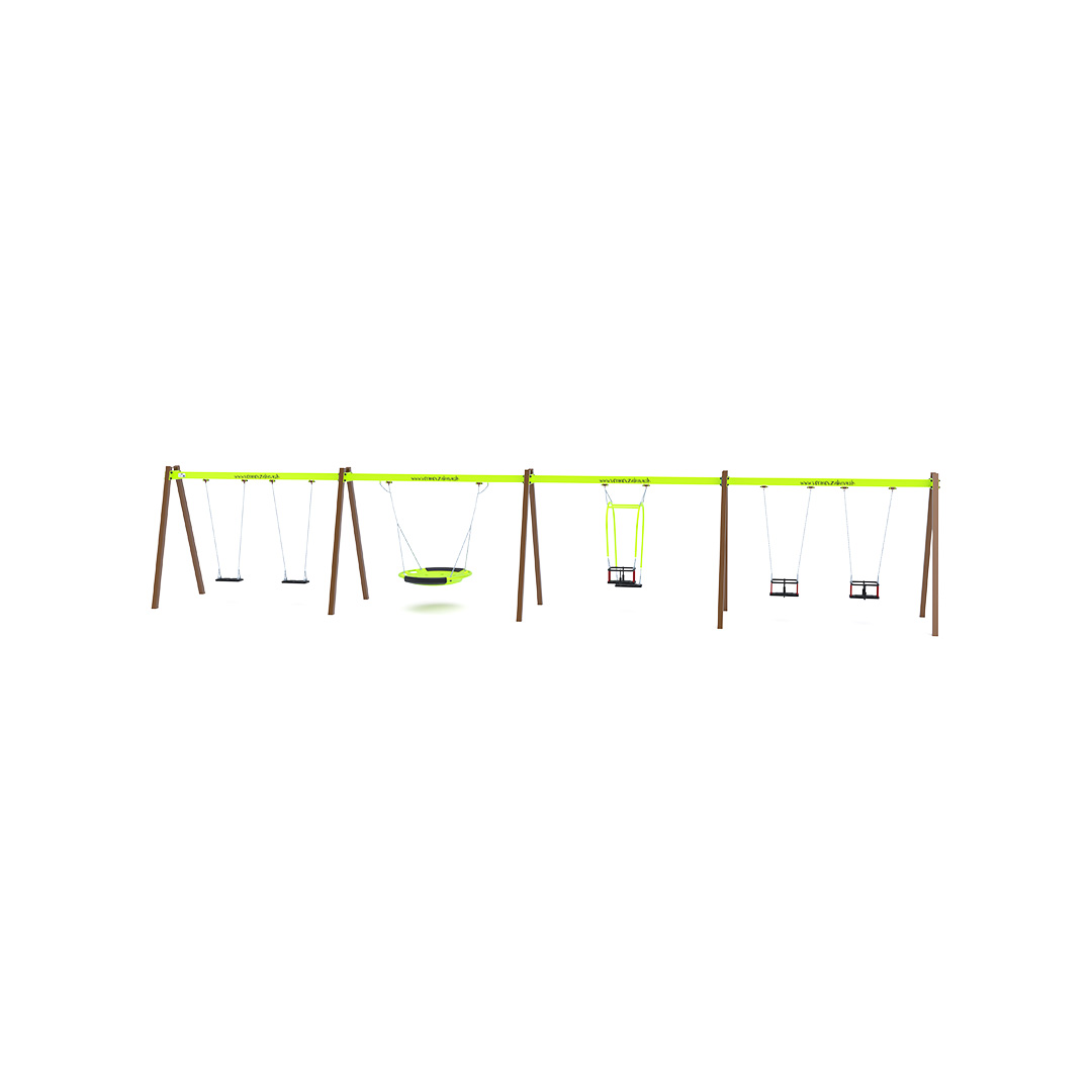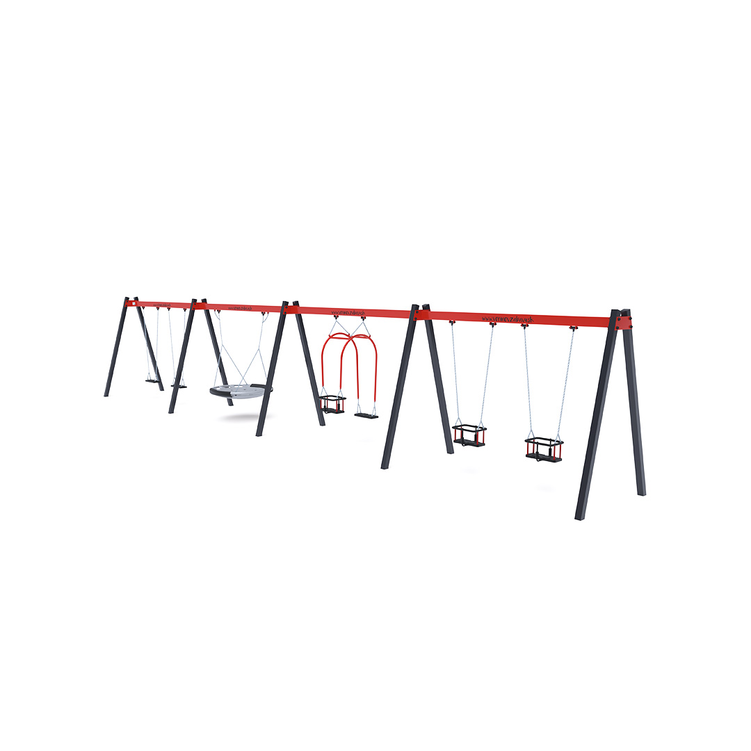 Gungställning Tieva är en gungställning avsedd för offentlig utomhusmiljö såsom lekplatser, skolor, förskolor, parker eller gemensamma gårdsmiljöer. Produkten är utförd i hot-dip galvanized steel, hdpe plastics, rubber, stainless steel fasteners, vilket ger en tålig konstruktion för daglig användning utomhus. Elementets mått är 12.44 x 1.6 x 2.3 meter. Rekommenderad ålderskategori är from 3 to 14 years. Fri fallhöjd är 1.50 meter. Säkerhetsytan är 12.2 x 7.5 meter.