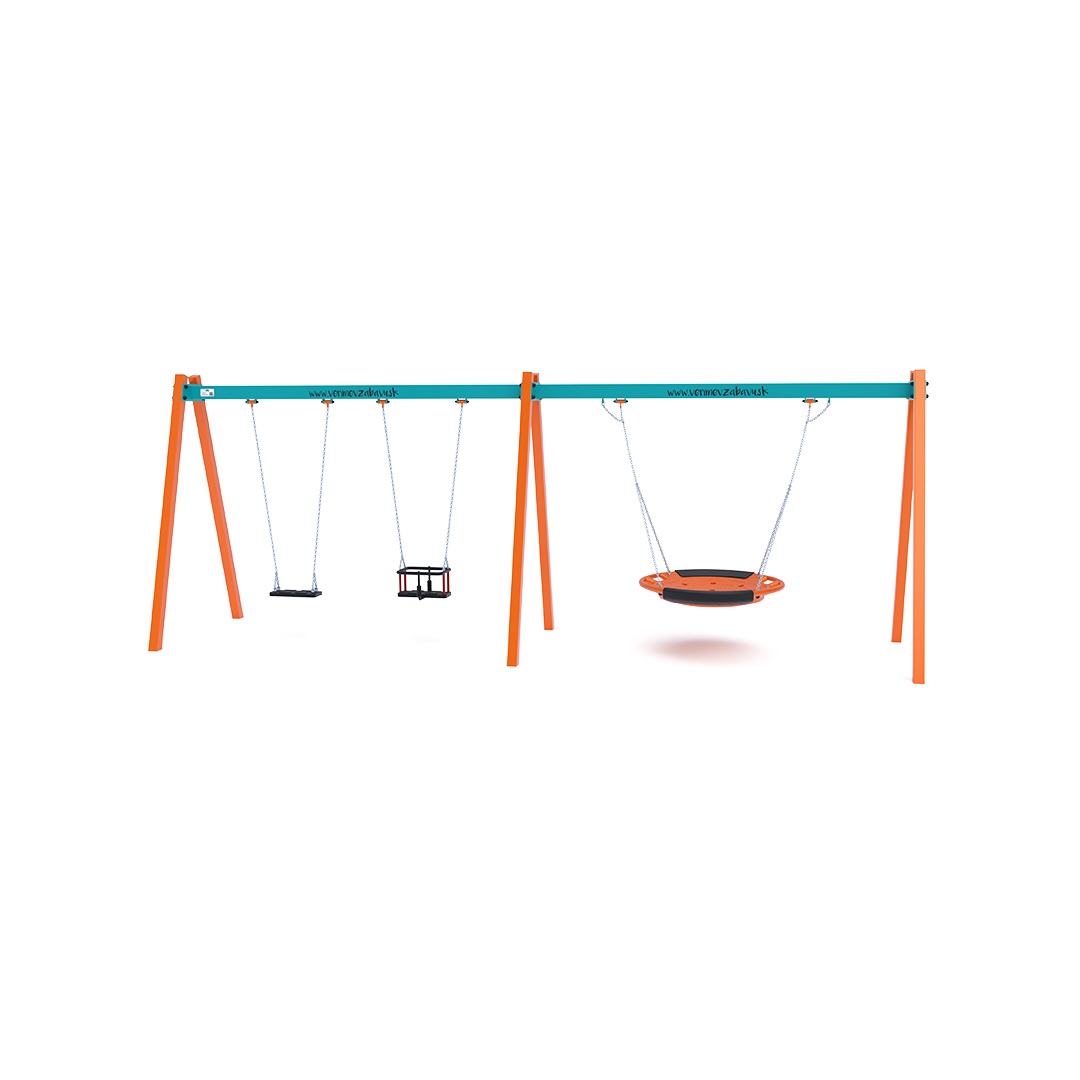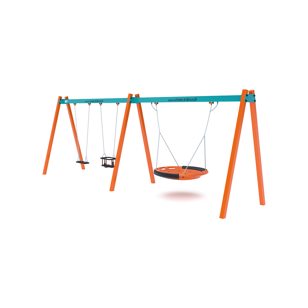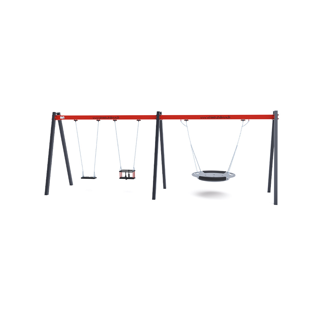 Gungställning Tuor är en gungställning avsedd för offentlig utomhusmiljö såsom lekplatser, skolor, förskolor, parker eller gemensamma gårdsmiljöer. Produkten är utförd i hot-dip galvanized steel, hdpe plastics, rubber, stainless steel fasteners, vilket ger en tålig konstruktion för daglig användning utomhus. Elementets mått är 6.23 x 1.6 x 2.3 meter. Rekommenderad ålderskategori är from 3 to 14 years. Fri fallhöjd är 1.50 meter. Säkerhetsytan är 6.2 x 7.5 meter.
