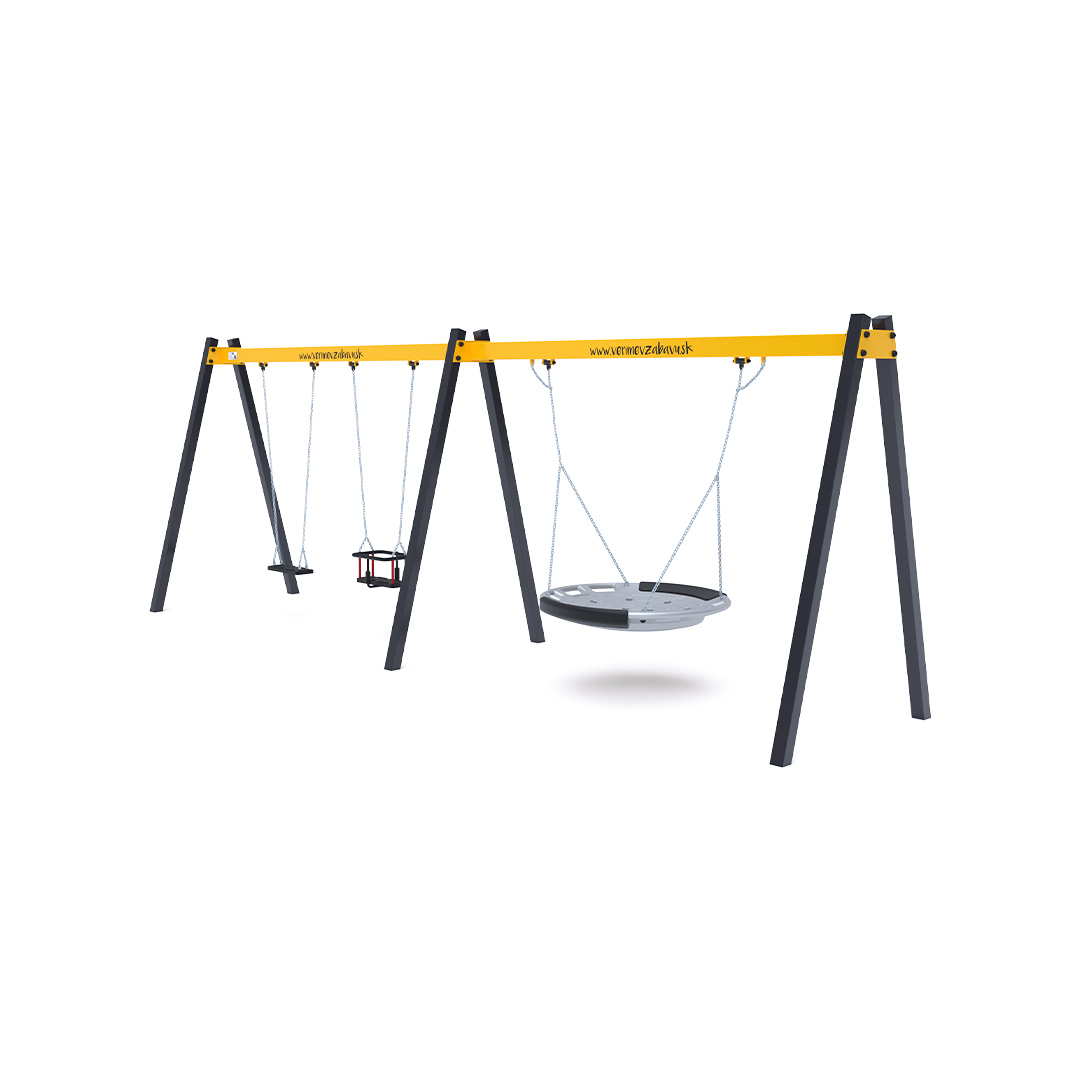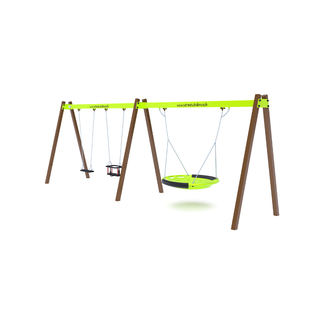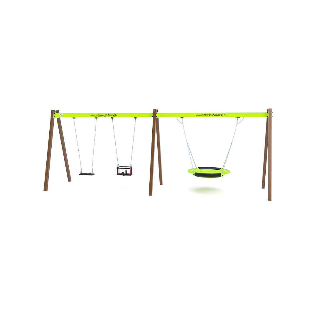 Gungställning Tuor är en gungställning avsedd för offentlig utomhusmiljö såsom lekplatser, skolor, förskolor, parker eller gemensamma gårdsmiljöer. Produkten är utförd i hot-dip galvanized steel, hdpe plastics, rubber, stainless steel fasteners, vilket ger en tålig konstruktion för daglig användning utomhus. Elementets mått är 6.23 x 1.6 x 2.3 meter. Rekommenderad ålderskategori är from 3 to 14 years. Fri fallhöjd är 1.50 meter. Säkerhetsytan är 6.2 x 7.5 meter.
