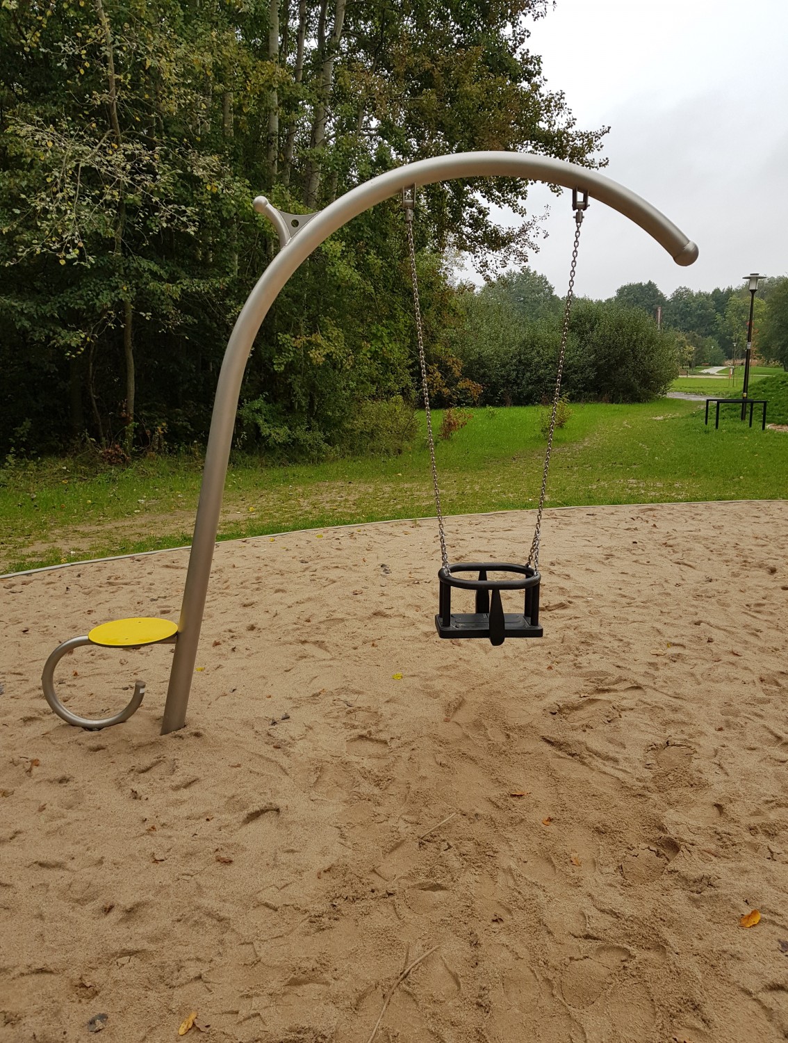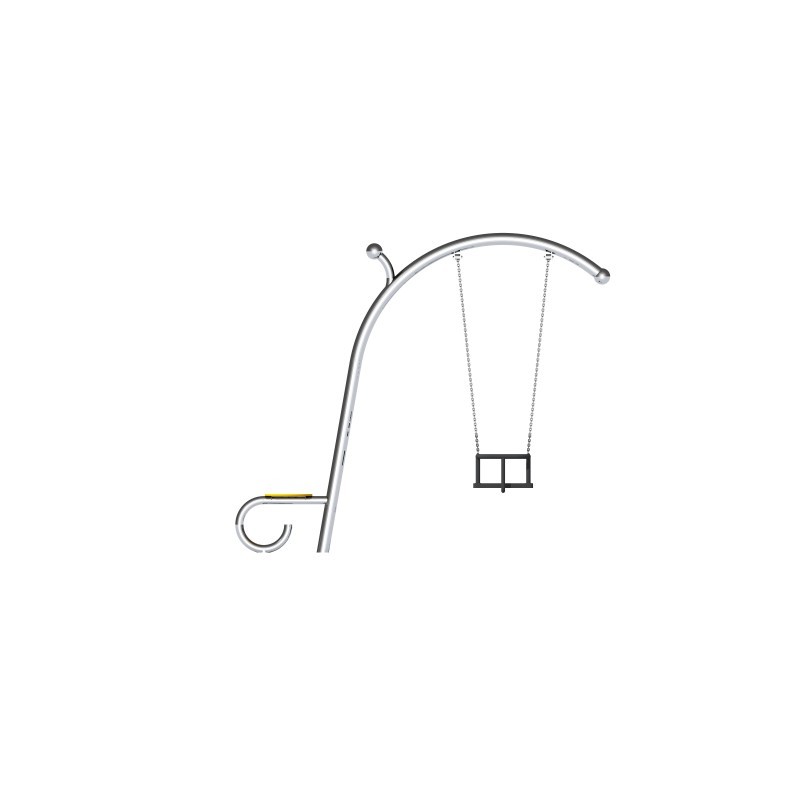 Gungställning VERGO 2 för offentlig utemiljö med fokus på säker användning, robust konstruktion och lång livslängd vid daglig drift. Material: rostfritt stål och pulverlackerat stål.