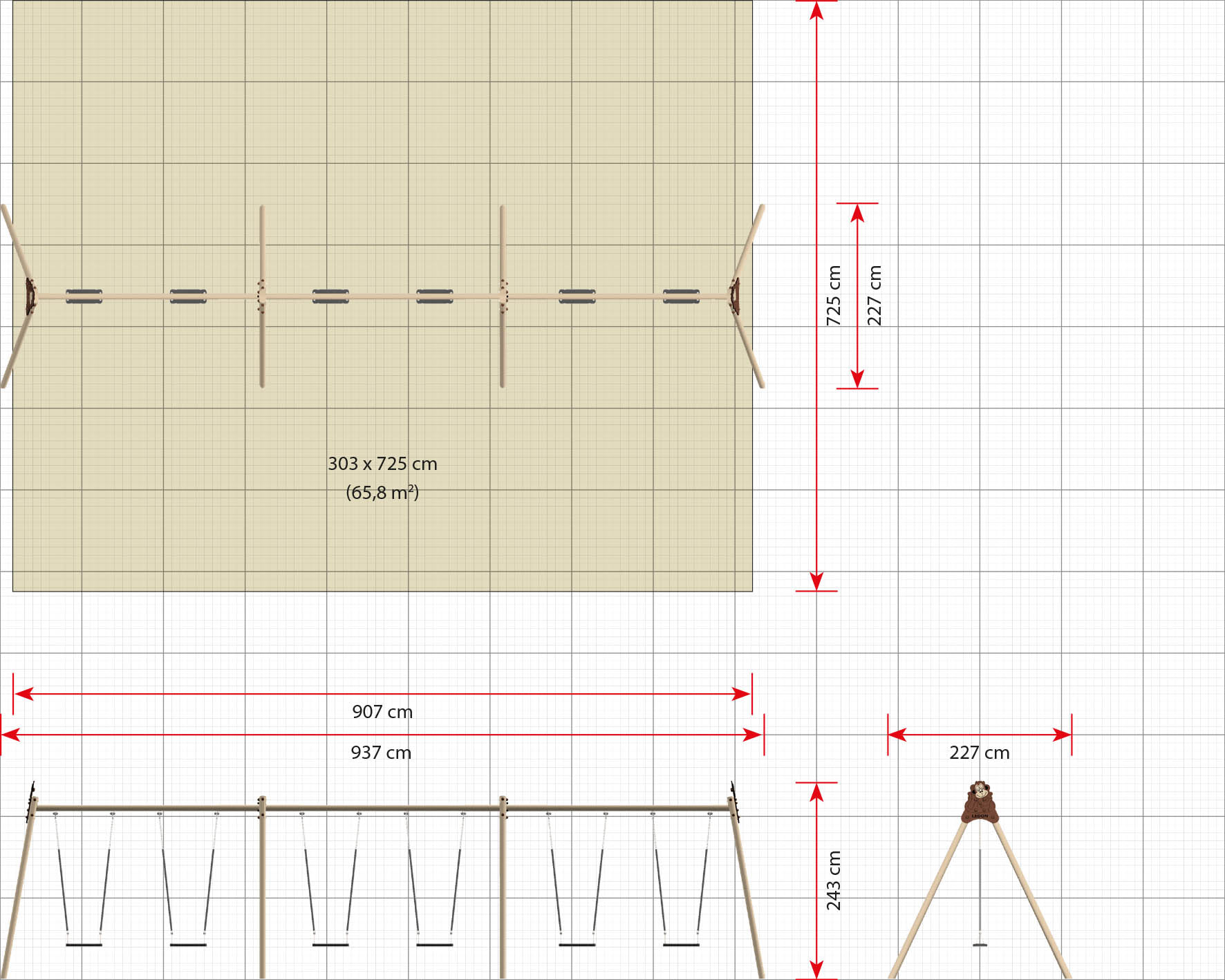 Gungställning Vilen är en hållbar lösning för daglig gunglek i offentlig miljö. Konstruktionen är framtagen för hög belastning och lång livslängd, samtidigt som den skapar en trygg och attraktiv lekpunkt. Gunglek stärker barns rytm, balans och samspel i både fri lek och organiserad aktivitet. Mått (L x B x H): 937 cm x 227 cm x 243 cm. Max fallhöjd: 124 cm. Rekommenderad ålder: Från 2 år.