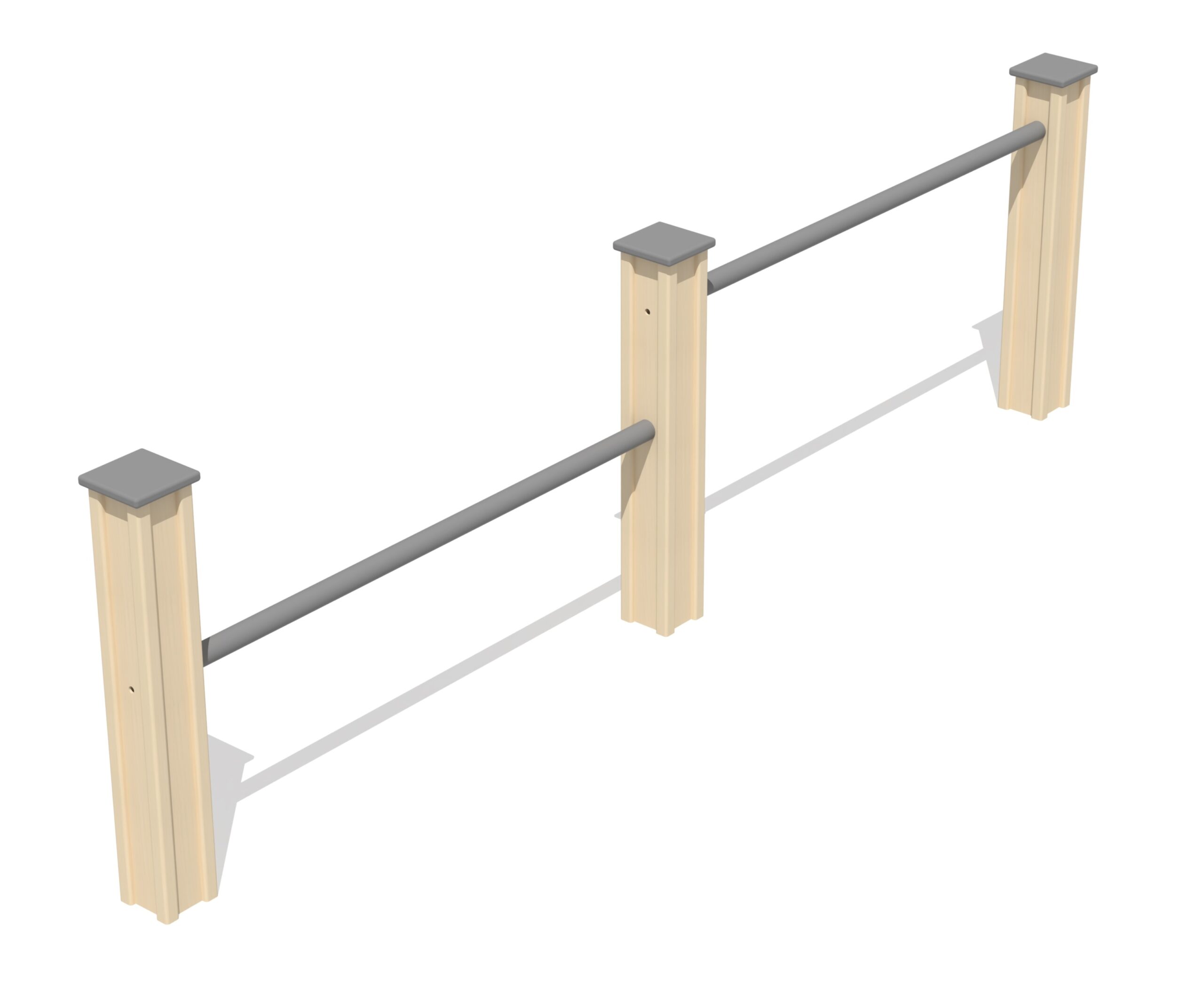 Armhävningsstänger som effektivt tränar bröst- och armmuskler. Stängerna kan även användas för benövningar såsom utfall samt för hoppövningar, vilket gör utrustningen mångsidig och lämplig för helkroppsträning i utomhusmiljö.