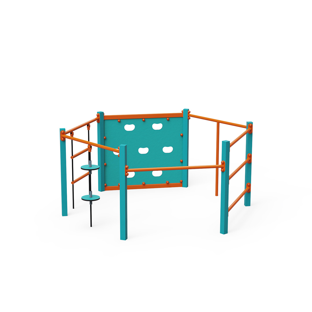 Gymcenter Zoen är ett gymcenter avsett för offentlig utomhusmiljö såsom lekplatser, skolor, förskolor, parker eller gemensamma gårdsmiljöer. Produkten är utförd i žiarovo zinkovaná oceľ, polyesterové laná, hpl materiál, nerezový spojovací materiál, vilket ger en tålig konstruktion för daglig användning utomhus. Rekommenderad ålderskategori är od 2 do 14 rokov. Fri fallhöjd är 1.00 meter.
