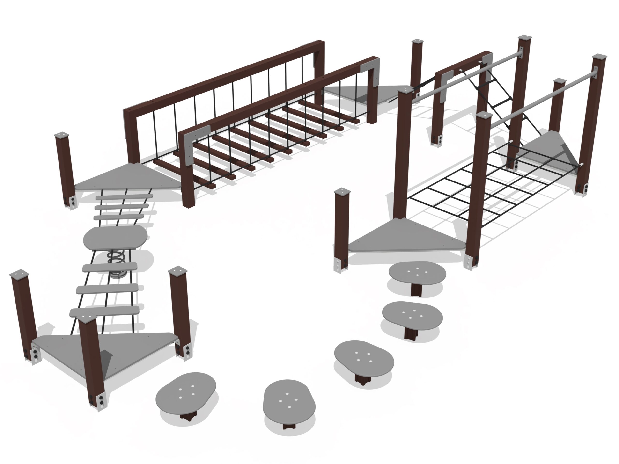 Balansspåret består av olika balans-, koordinations- och motoriska element som monteras i följd och ger en varierad och utvecklande rörelselek.