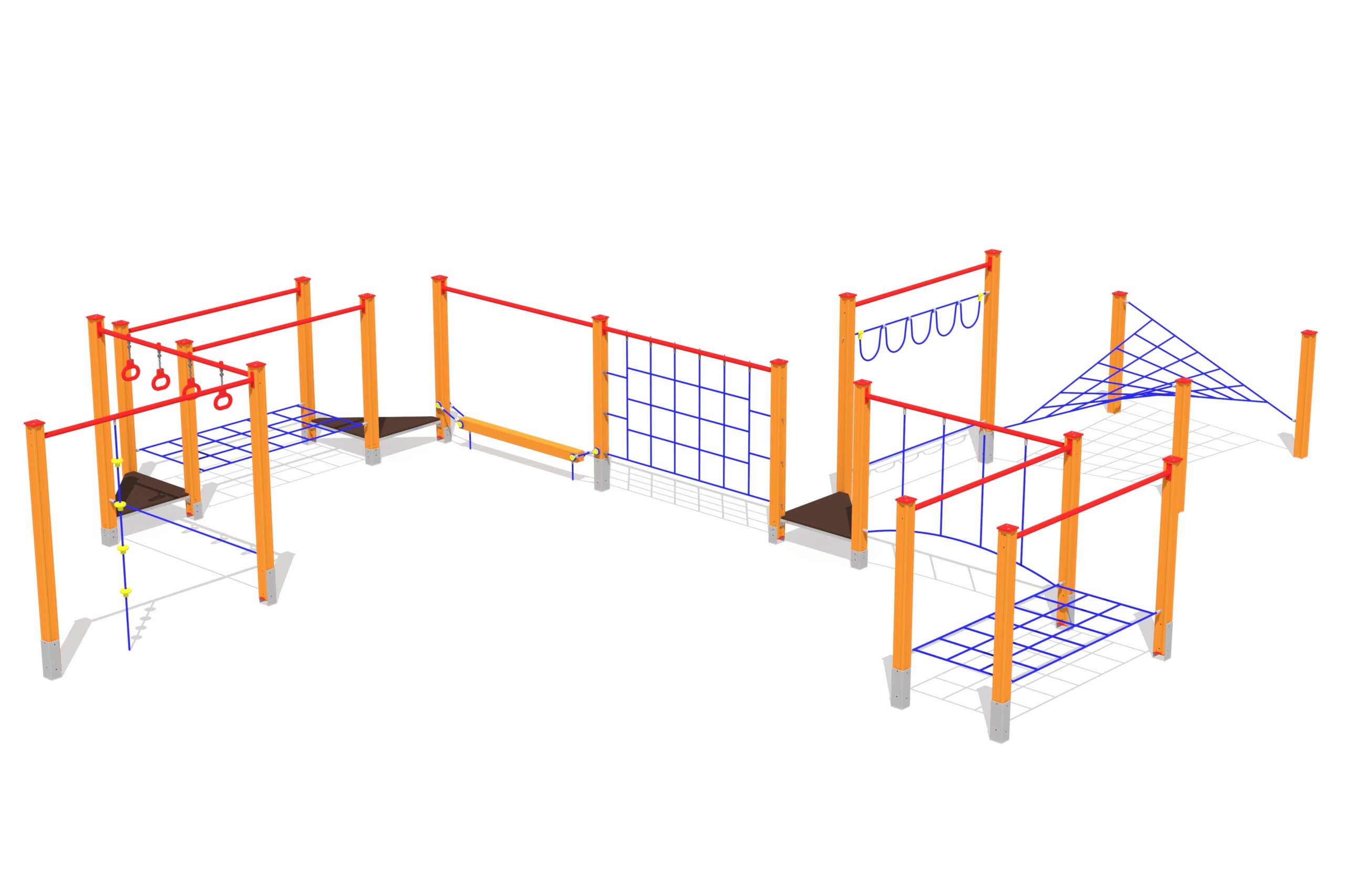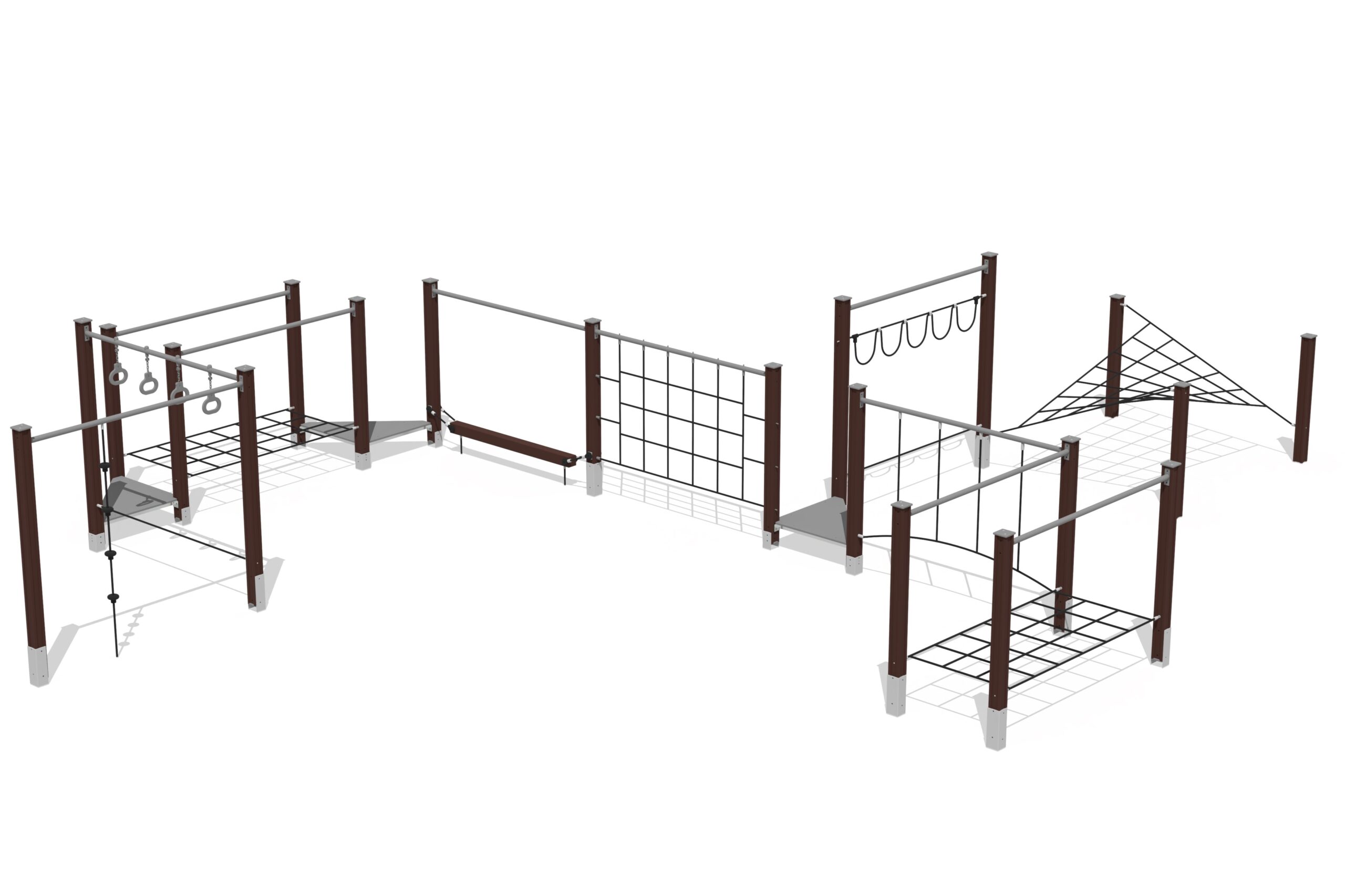 Produkten består av flera balans-, koordinations- och upphängningselement som monteras i följd. Användarna kan förflytta sig från startpunkt till slutpunkt utan att sätta fötterna i marken. Steg installeras mellan elementen.