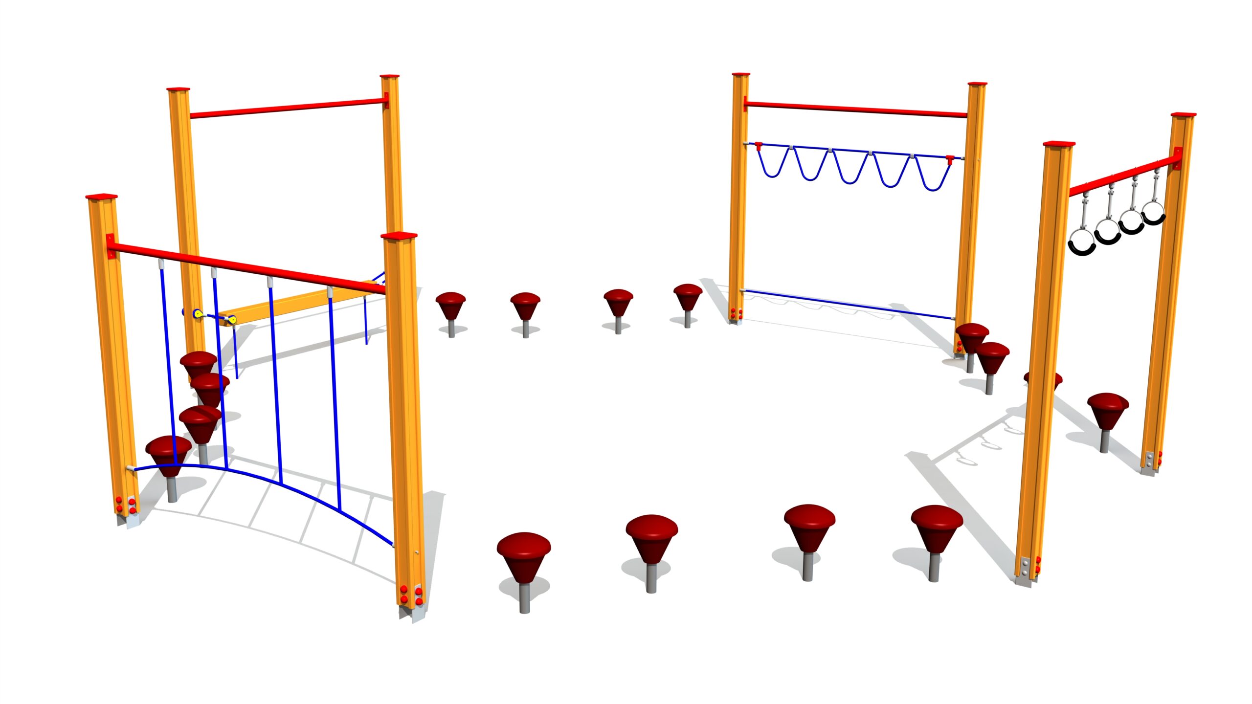 Balansspåret består av fem olika balans-, koordinations- och upphängningselement som monteras i följd. Användaren kan ta sig från startpunkt till slutpunkt utan att sätta fötterna i marken. Steg installeras mellan elementen för sammanhängande rörelse.