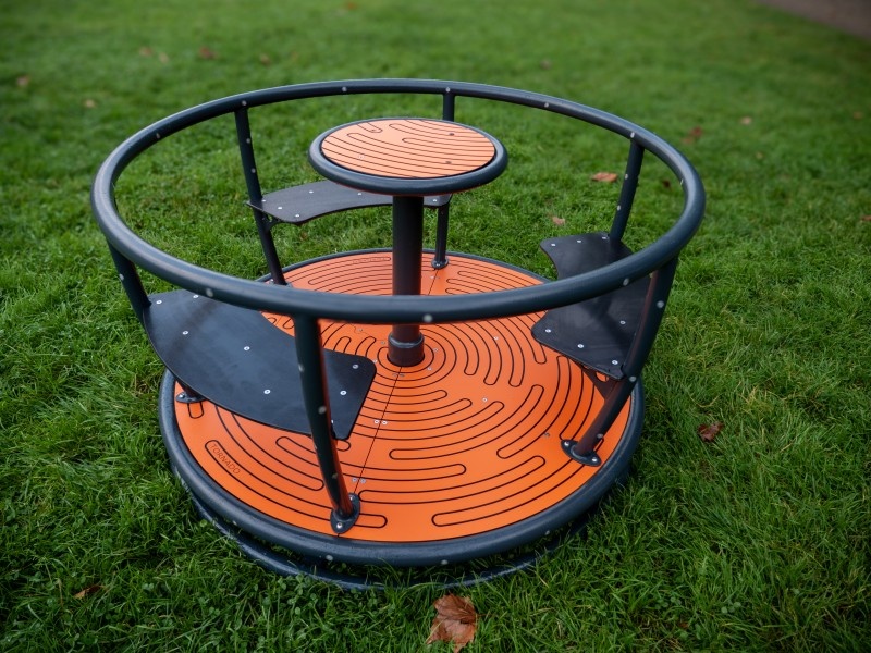 Karusell för offentlig utemiljö som ger lekfull rotationsträning och social aktivitet.