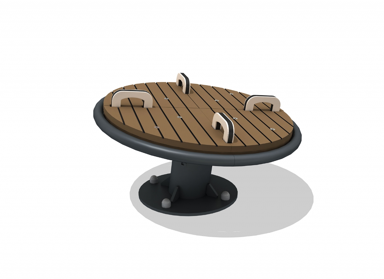 Karusell Kelela i metallprofil, HDPE och HPL för offentlig miljö.