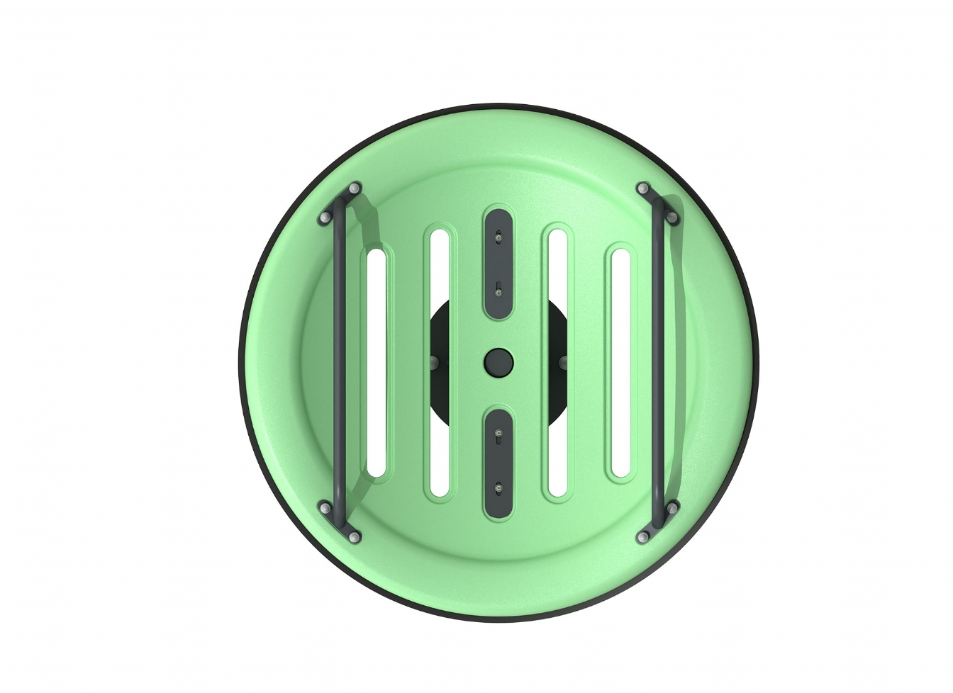 Karusell Kelilo i metallprofil, HDPE och HPL för offentlig miljö.