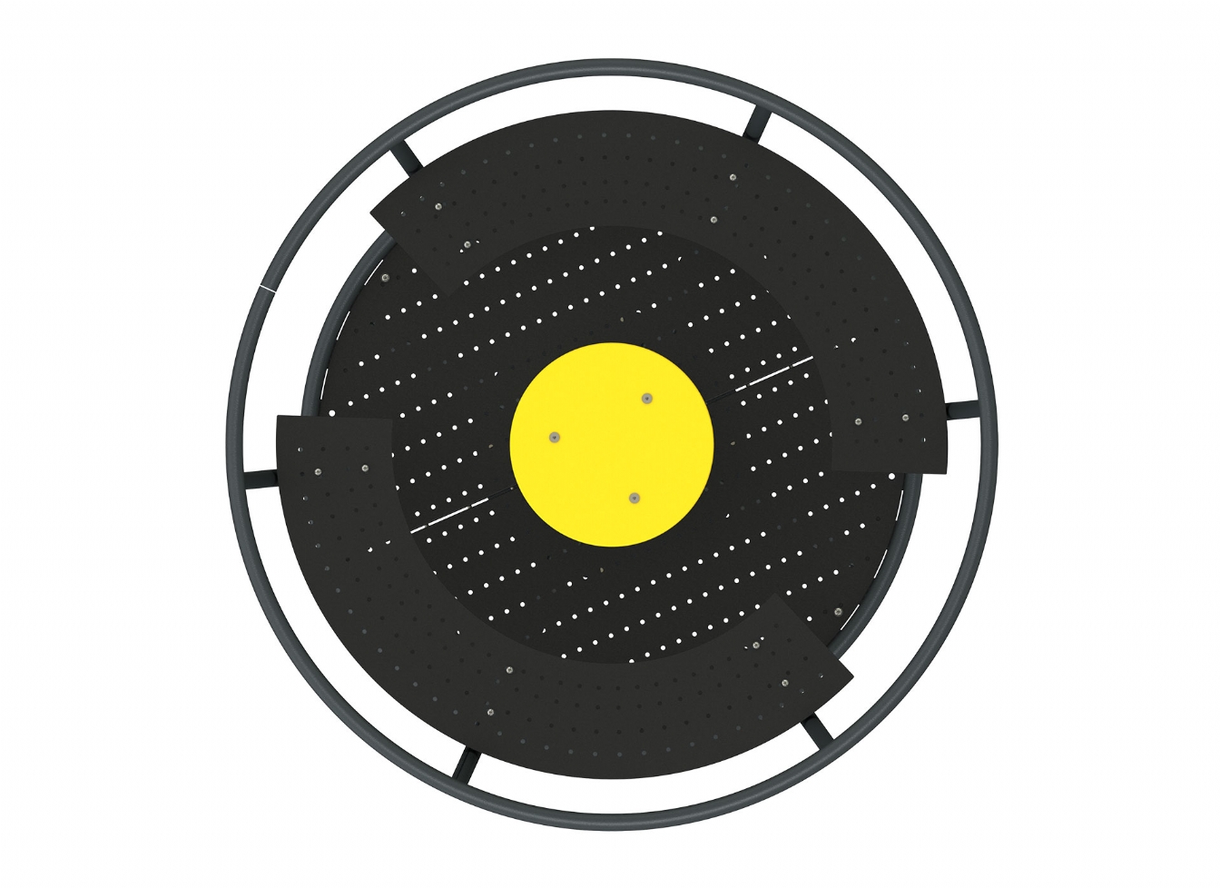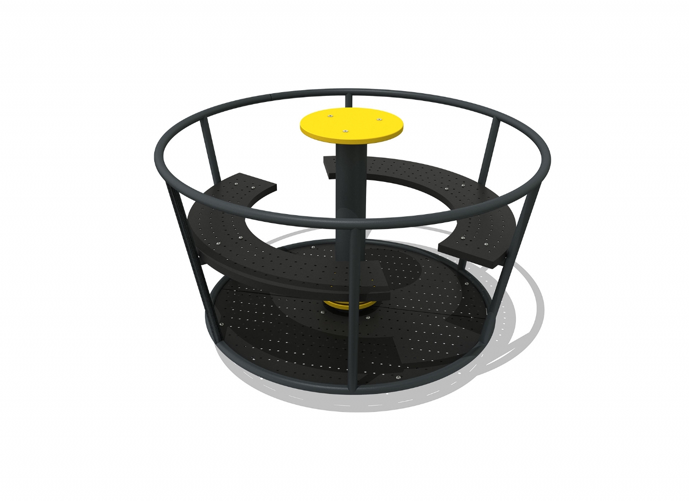 Karusell Kelola i metallprofil, HDPE och HPL för offentlig miljö.