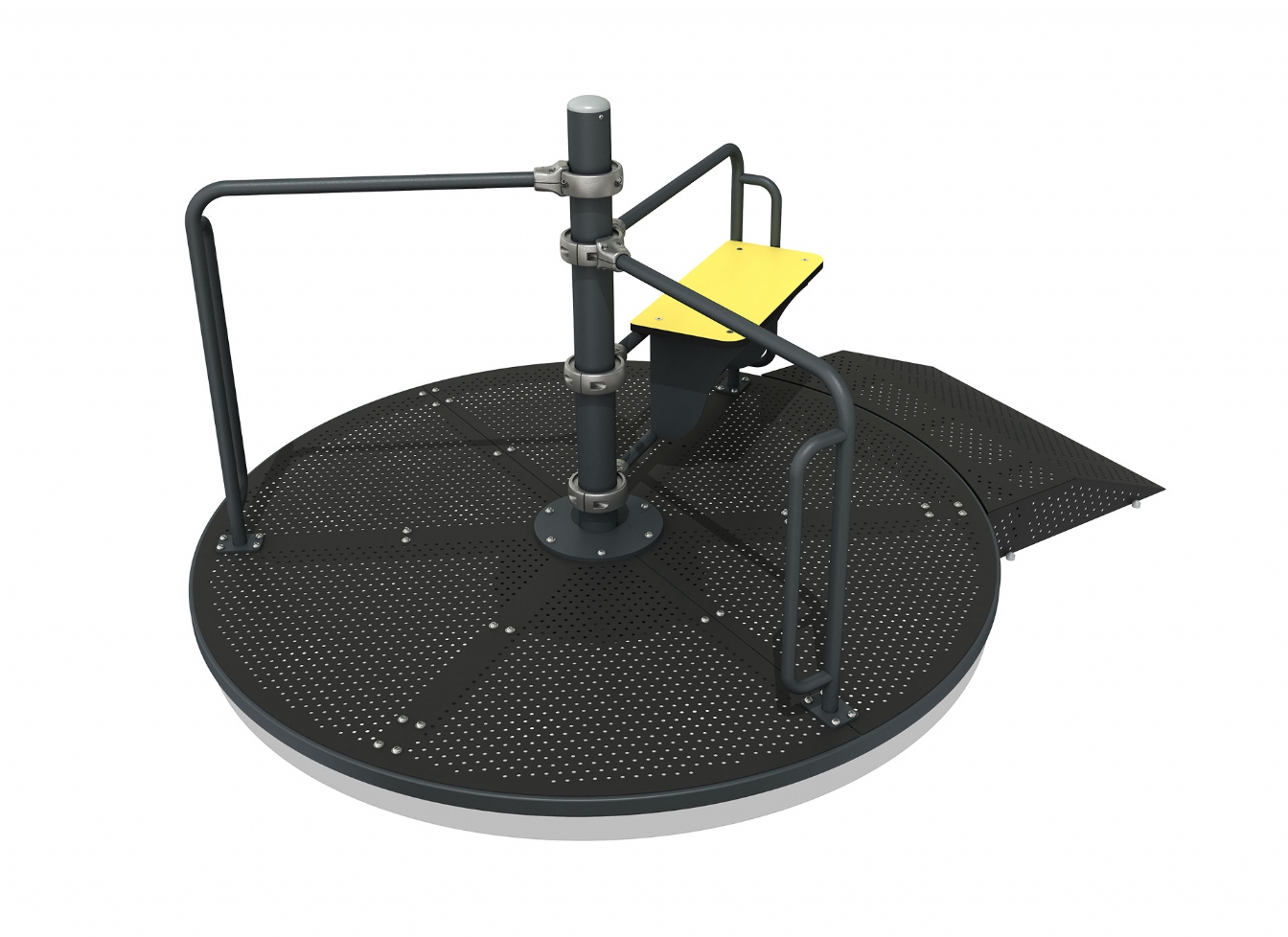 Karusell Lore i metallprofil, HDPE och HPL för offentlig miljö.
