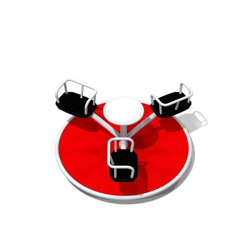 Karusell MISTRAL 3 för offentlig utemiljö med fokus på säker användning, robust konstruktion och lång livslängd vid daglig drift. Material: PE.