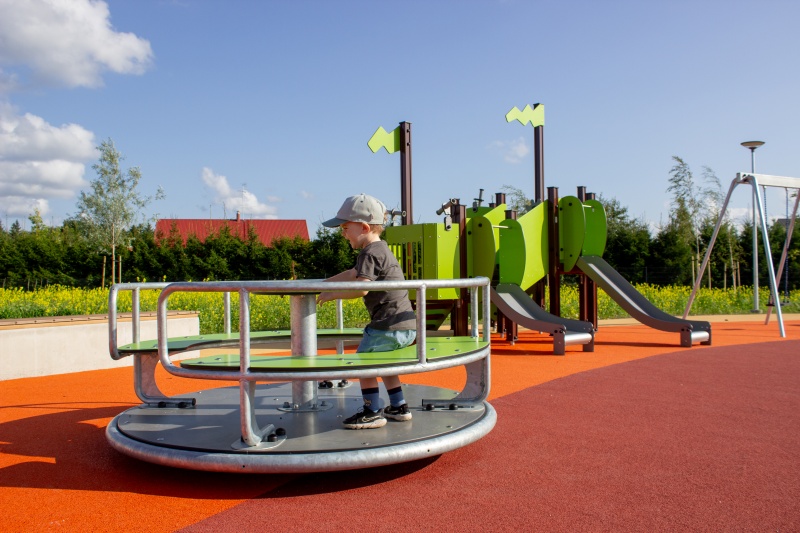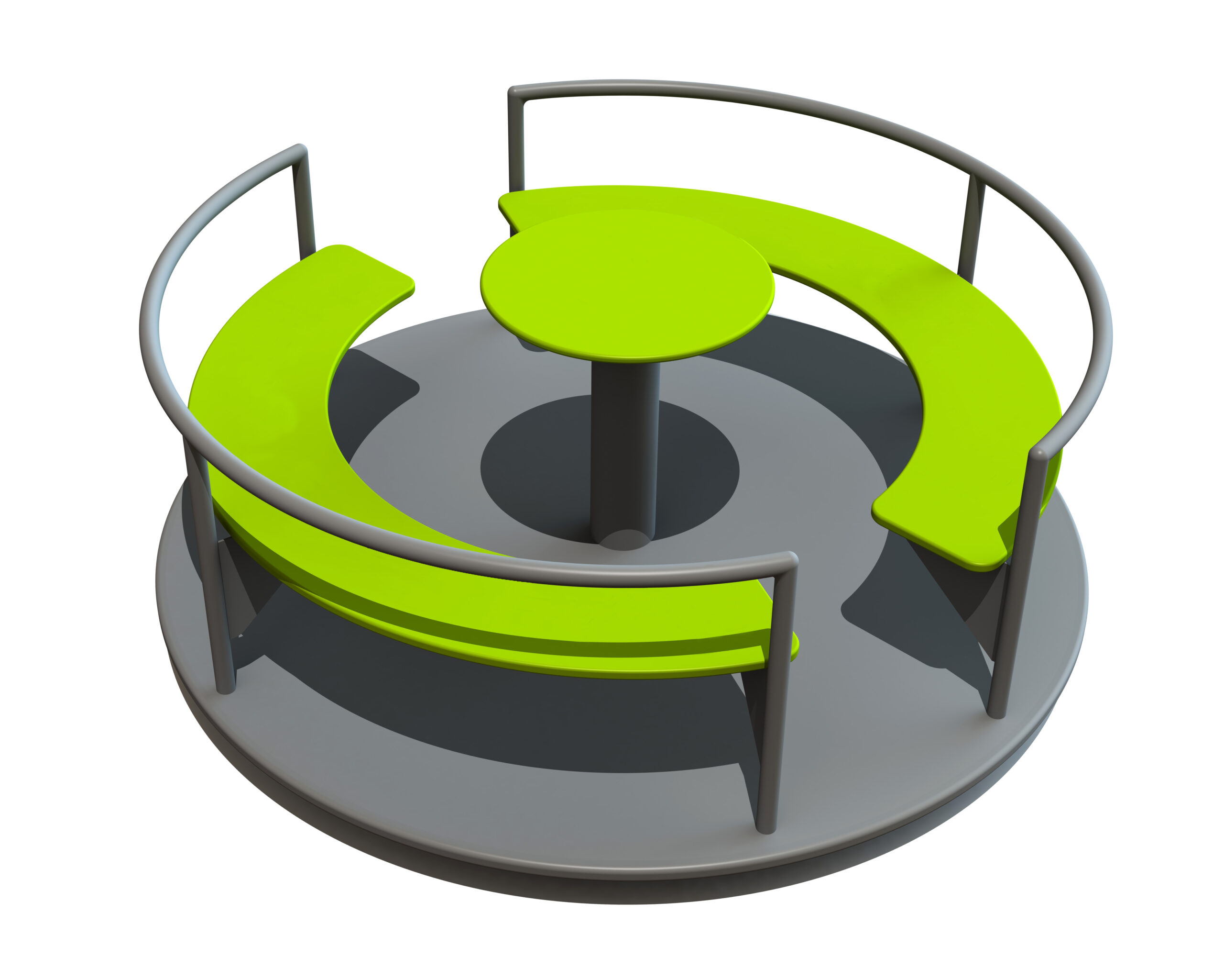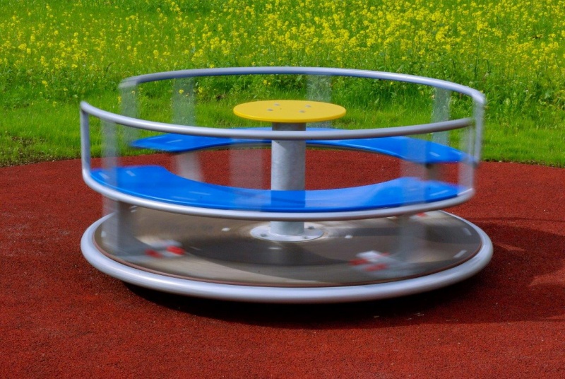 Solhjul roterar runt en fast mittplatta och används genom att barn skjuter från utsidan. Finns i flera varianter med plywood eller HDPE-bas.
