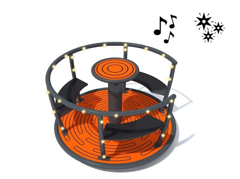 Karusell TORNADO 130 Lumo Lek för offentlig utemiljö med fokus på säker användning, robust konstruktion och lång livslängd vid daglig drift.