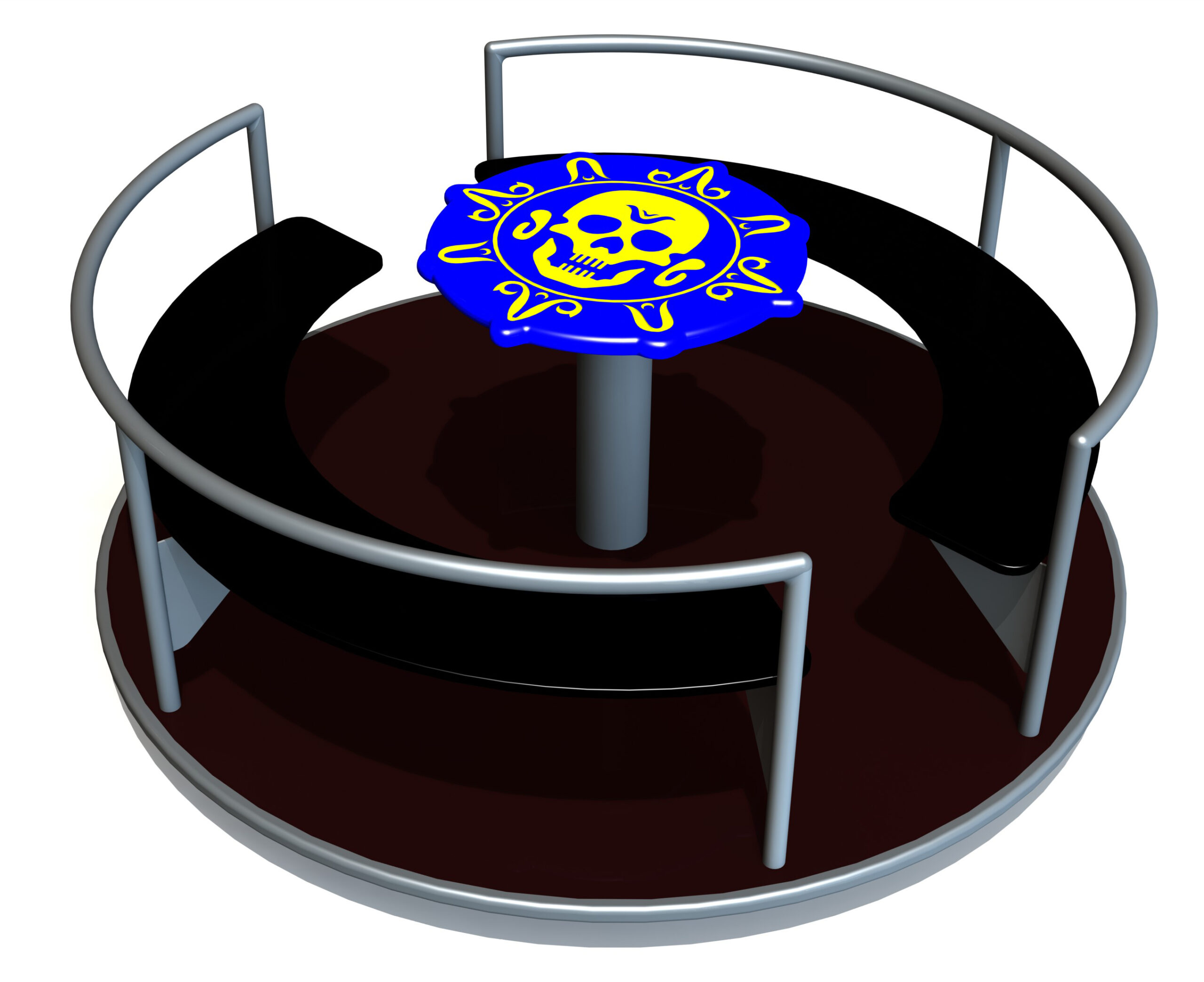 Pirattematiserad karusell för aktiv lek, samarbete och fantasifulla äventyr på lekplatsen.