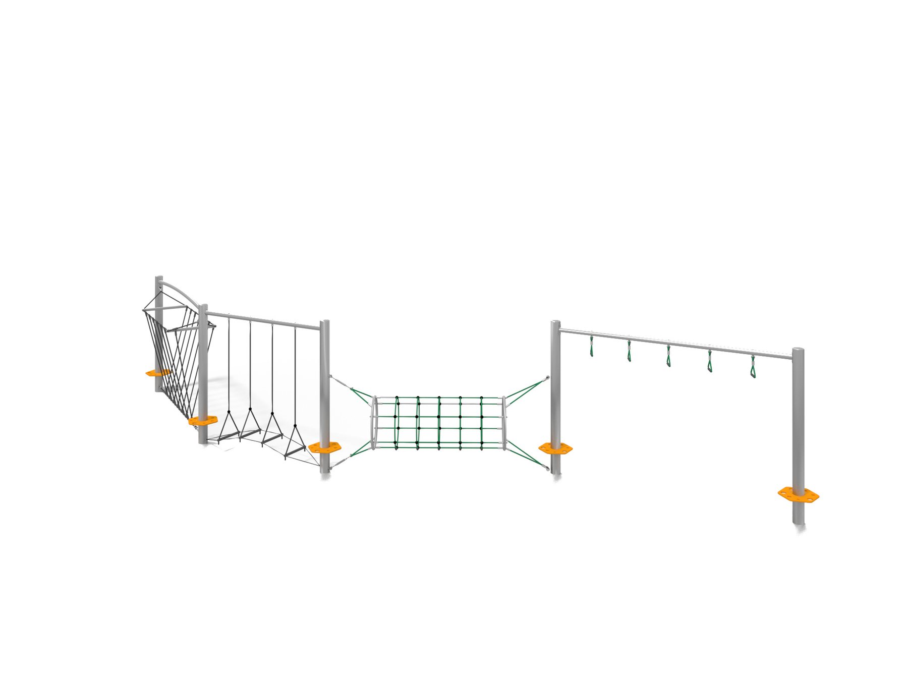 Klätterställning Alelia är utvecklad för lekplatser, skolor, förskolor, parker och bostadsgårdar och anpassad för daglig användning där slitstyrka, säkerhet och låg underhållsnivå är viktiga krav. Den är utformad med tunnel och balansmoment för att skapa en tydlig och funktionell användning. Konstruktionen i rostfritt stål, HDPE och polyesterrep bidrar till lång livslängd och gör produkten lämplig för utomhusbruk året om. Den stödjer aktiviteter som klättring, krypning, armgång, fysisk aktivitet och motorik, vilket gör den till ett funktionellt inslag i miljöer där rörelse, lek eller träning står i fokus. Rekommenderat underlag är gummiplattor och grus.