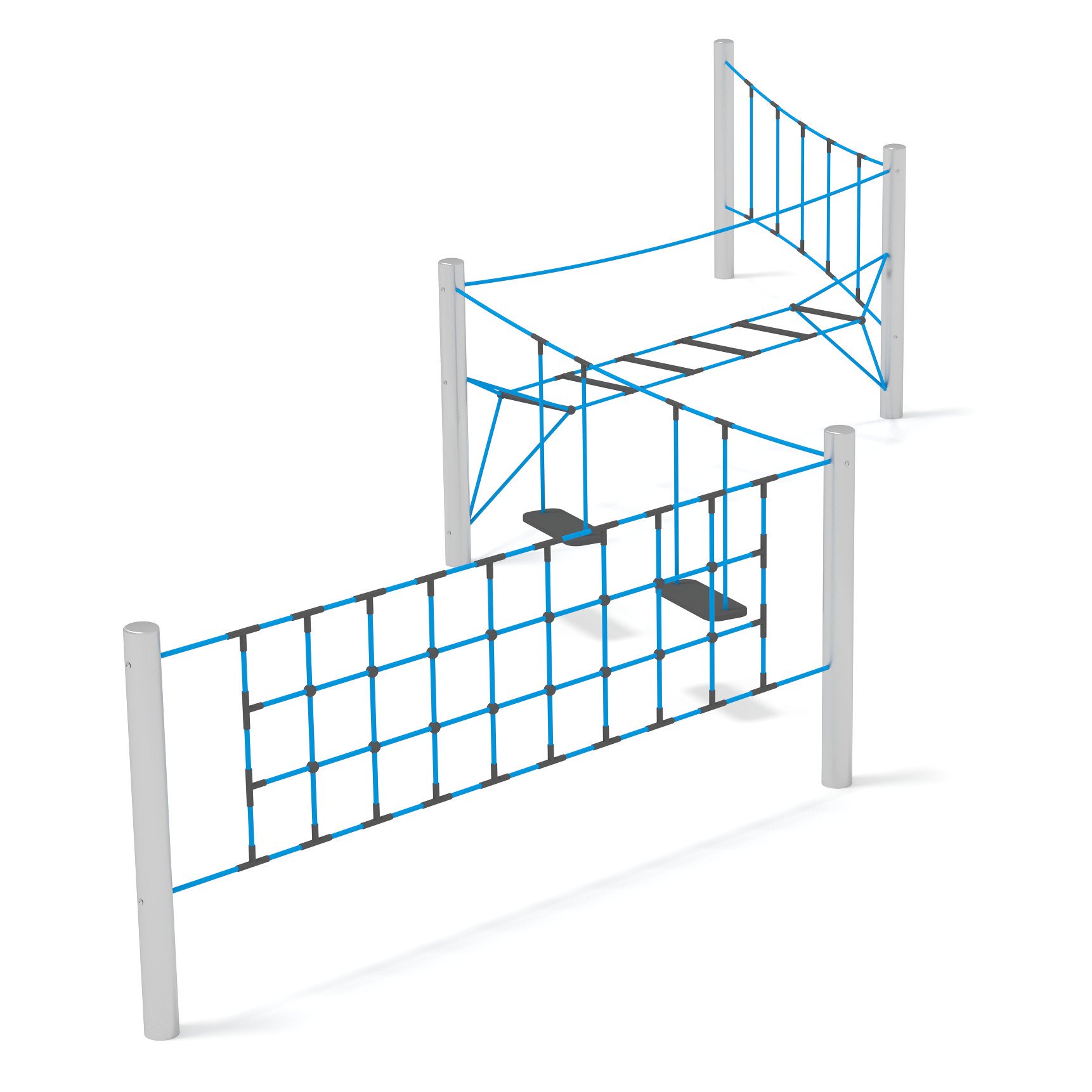 Klätterställning Alonel i rostfritt stål och polyesterrep för offentlig miljö.
