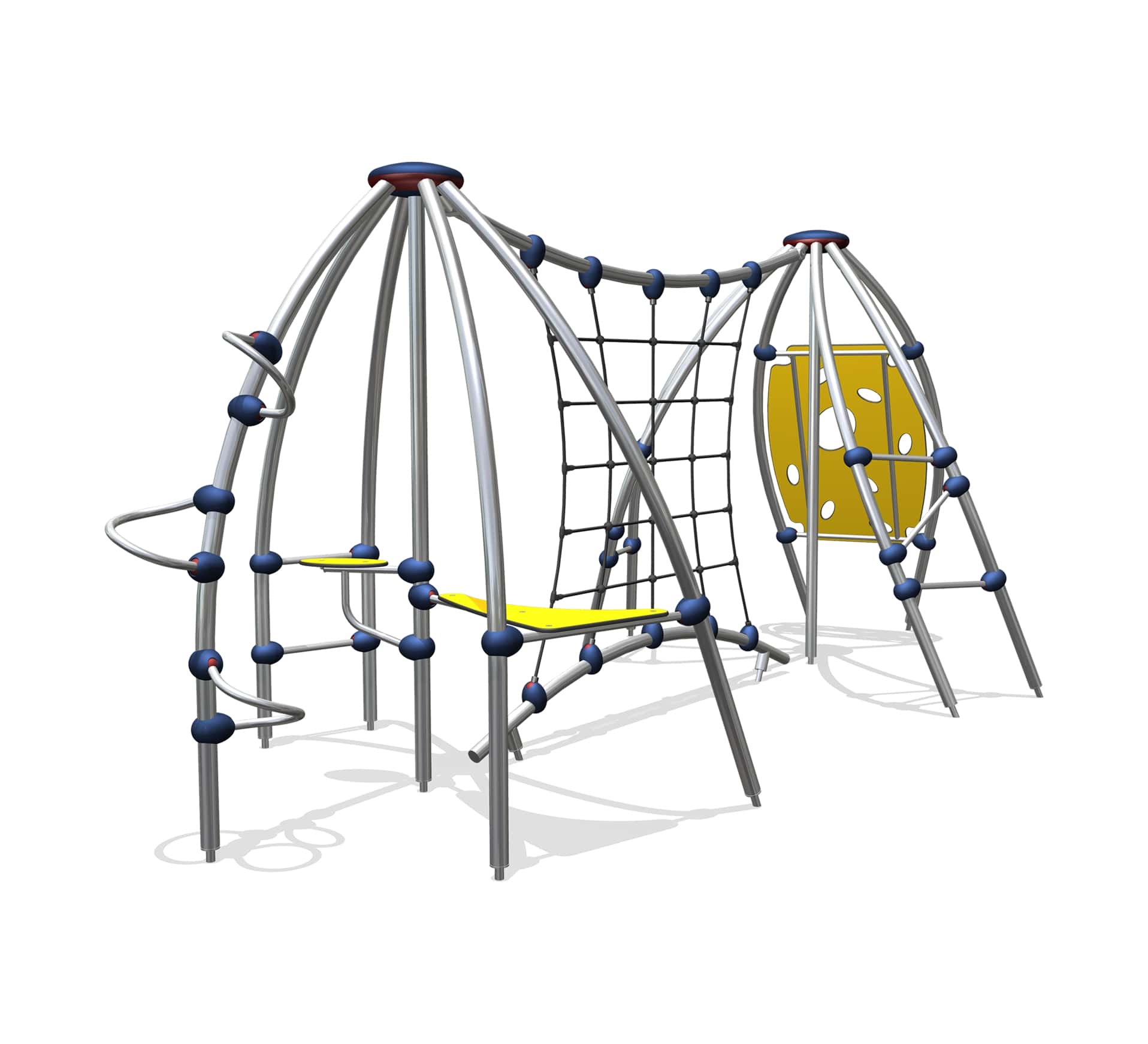 Produkten är utvecklad för lekplatser, förskolegårdar och andra offentliga utemiljöer där utrustningen behöver tåla regelbunden användning över tid. Modellen är utformad för klättring och utmaning i olika nivåer, vilket stödjer styrka, balans och koordination. Mått enligt specifikation: cirka 6,3 x 2,9 x 2,7 m. Rekommenderad ålder: 1+. En hållbar lösning för långsiktig drift och trygg användning i offentlig utemiljö.