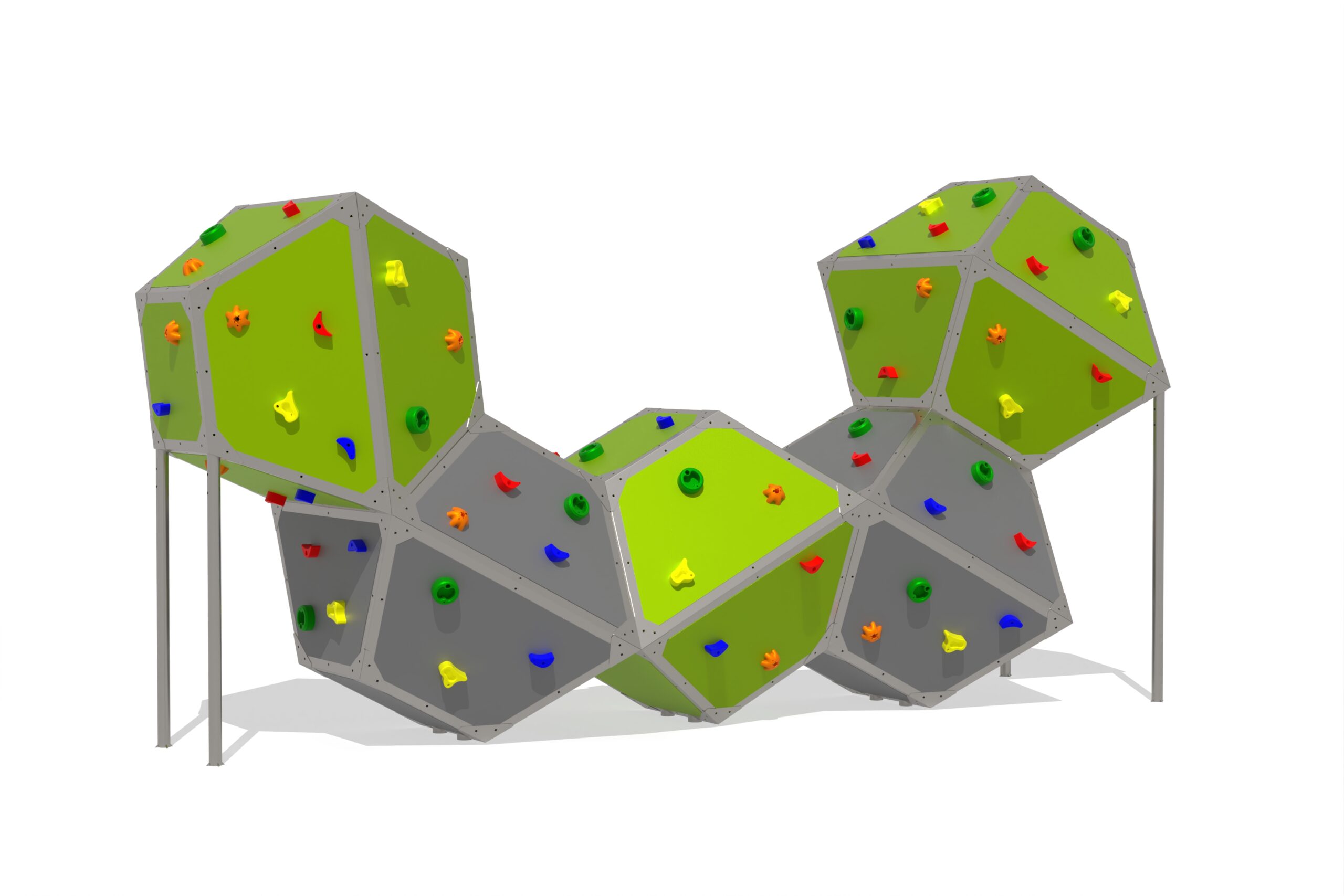 Georock är en boulderinspirerad klätterlösning som ger barn möjlighet att klättra fritt på låga väggar. Produkten är anpassad för både barn och ungdomar och erbjuder utmaningar i olika höjder. Den säkra utformningen utan rep gör den lättillgänglig och främjar både fysisk och social utveckling. Material: högkvalitativa klätterstenar i polyresin, rostfri metallprofil, kompakt fiberskiva med hög densitet samt skruvar i rostfritt stål. Installation kan ske på betongyta eller genom gjutning i mark.