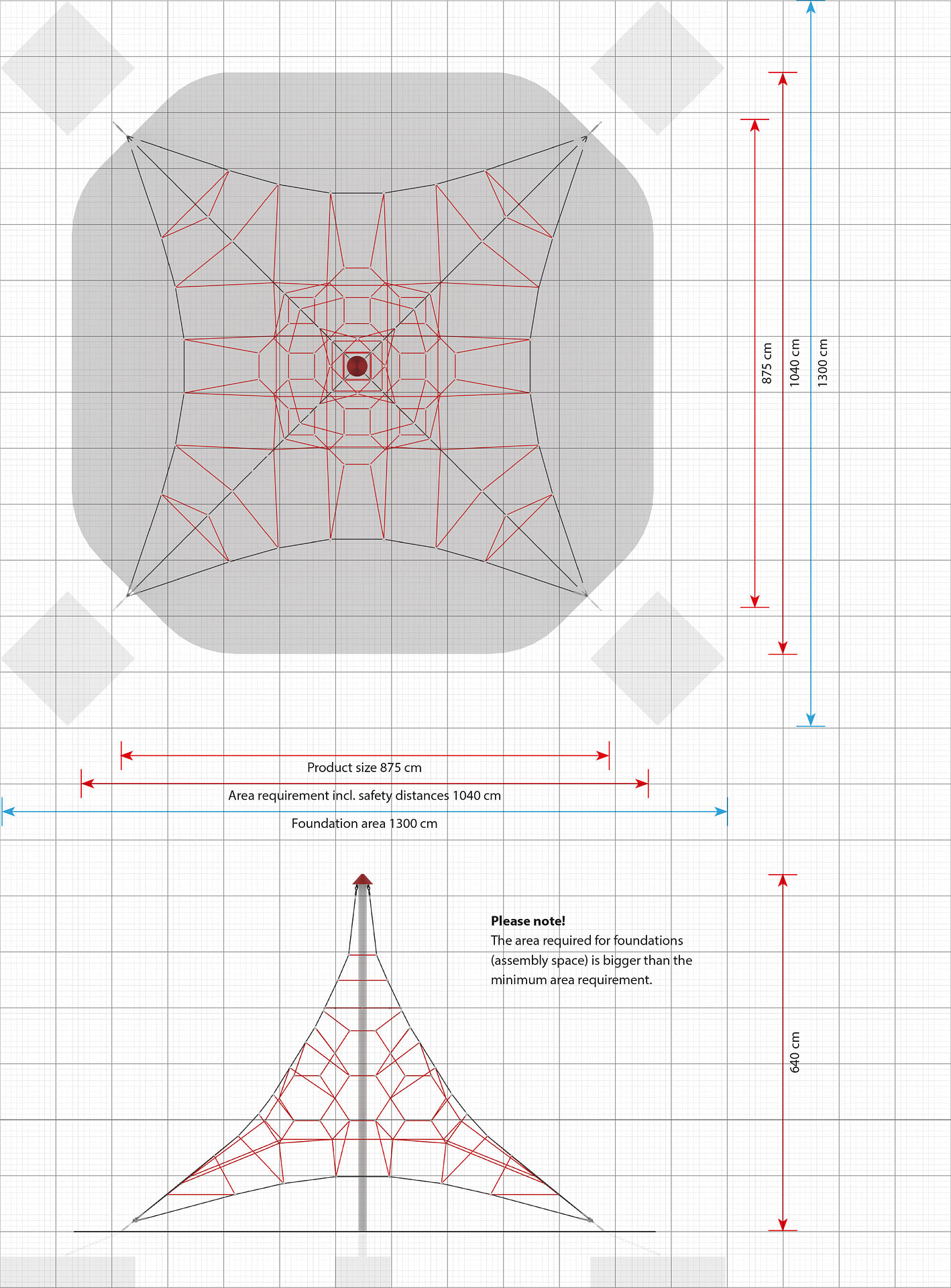 Klätterställning Gero är utvecklad för aktiv klätterlek som utmanar styrka, balans och koordination. Produkten uppmuntrar barn att testa rörelser i egen takt och bygga självförtroende. Den robusta konstruktionen gör den lämplig för intensiv användning i offentlig miljö. Mått (L x B x H): 875 cm x 875 cm x 640 cm. Max fallhöjd: 185 cm. Rekommenderad ålder: Från 6 år.