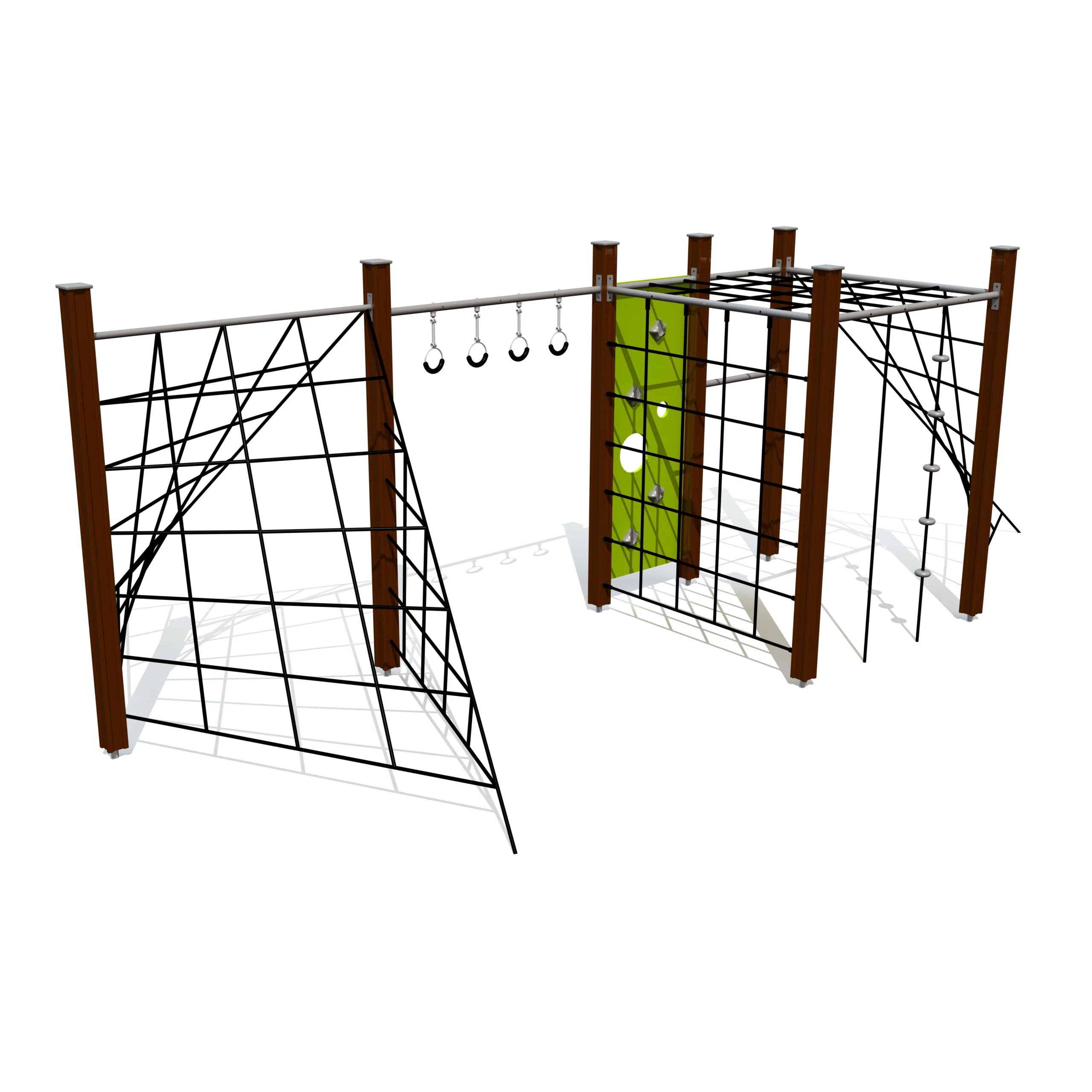 Klätterställning Gibbon S är utformad för barn med mycket rörelseenergi och ett stort intresse för klättring. Konstruktionen erbjuder diagonala och horisontella klätternät för förflyttning i flera riktningar, gymnastikringar för upphängning samt rör, väggar och rep för klättring uppåt. Kombinationen av olika klättermoment bidrar till utveckling av styrka, koordination och kroppskontroll.