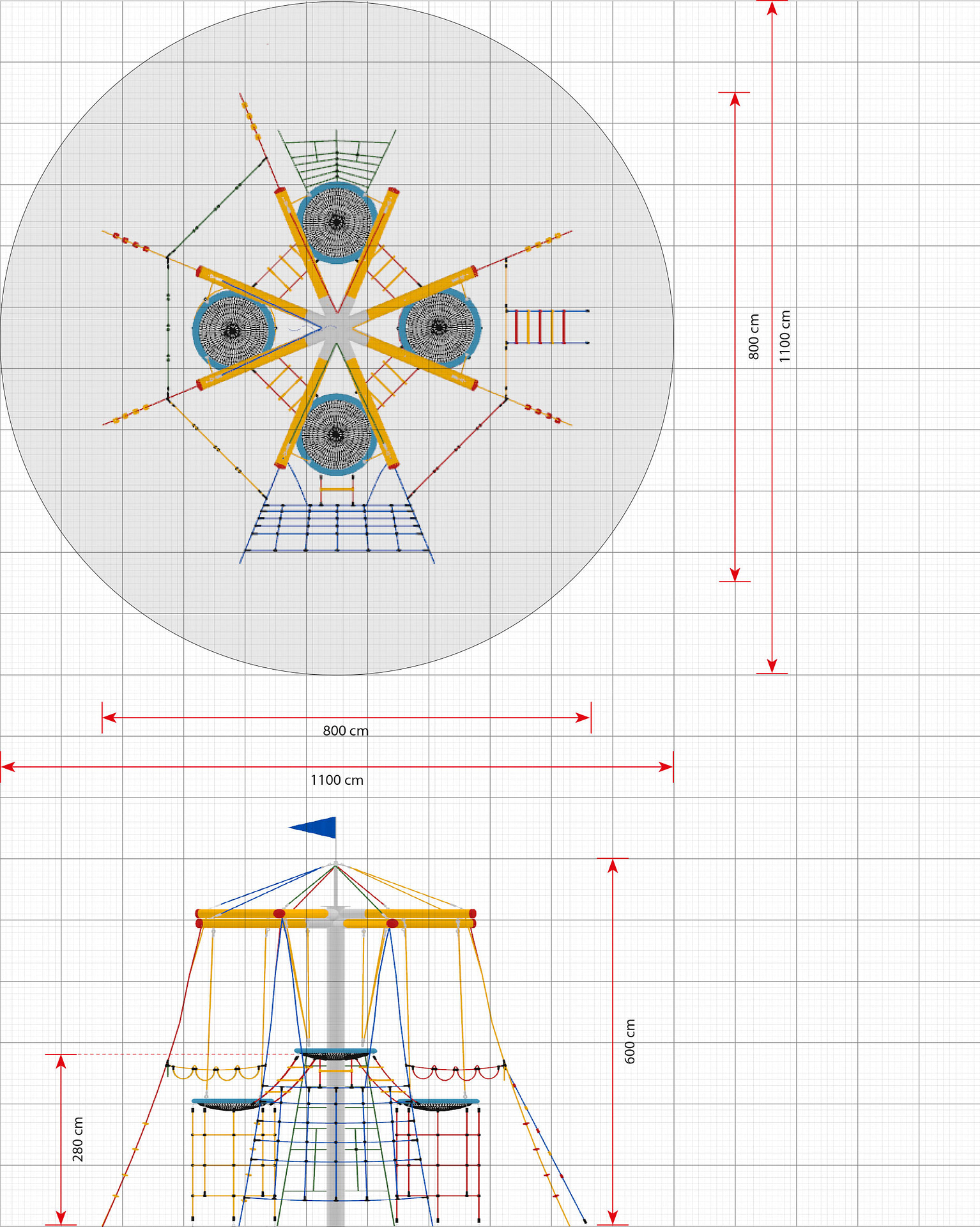 Klätterställning Jonor är utvecklad för aktiv klätterlek som utmanar styrka, balans och koordination. Produkten uppmuntrar barn att testa rörelser i egen takt och bygga självförtroende. Den robusta konstruktionen gör den lämplig för intensiv användning i offentlig miljö. Mått (L x B x H): 770 cm x 770 cm x 595 cm. Max fallhöjd: 280 cm. Rekommenderad ålder: Från 6 år.