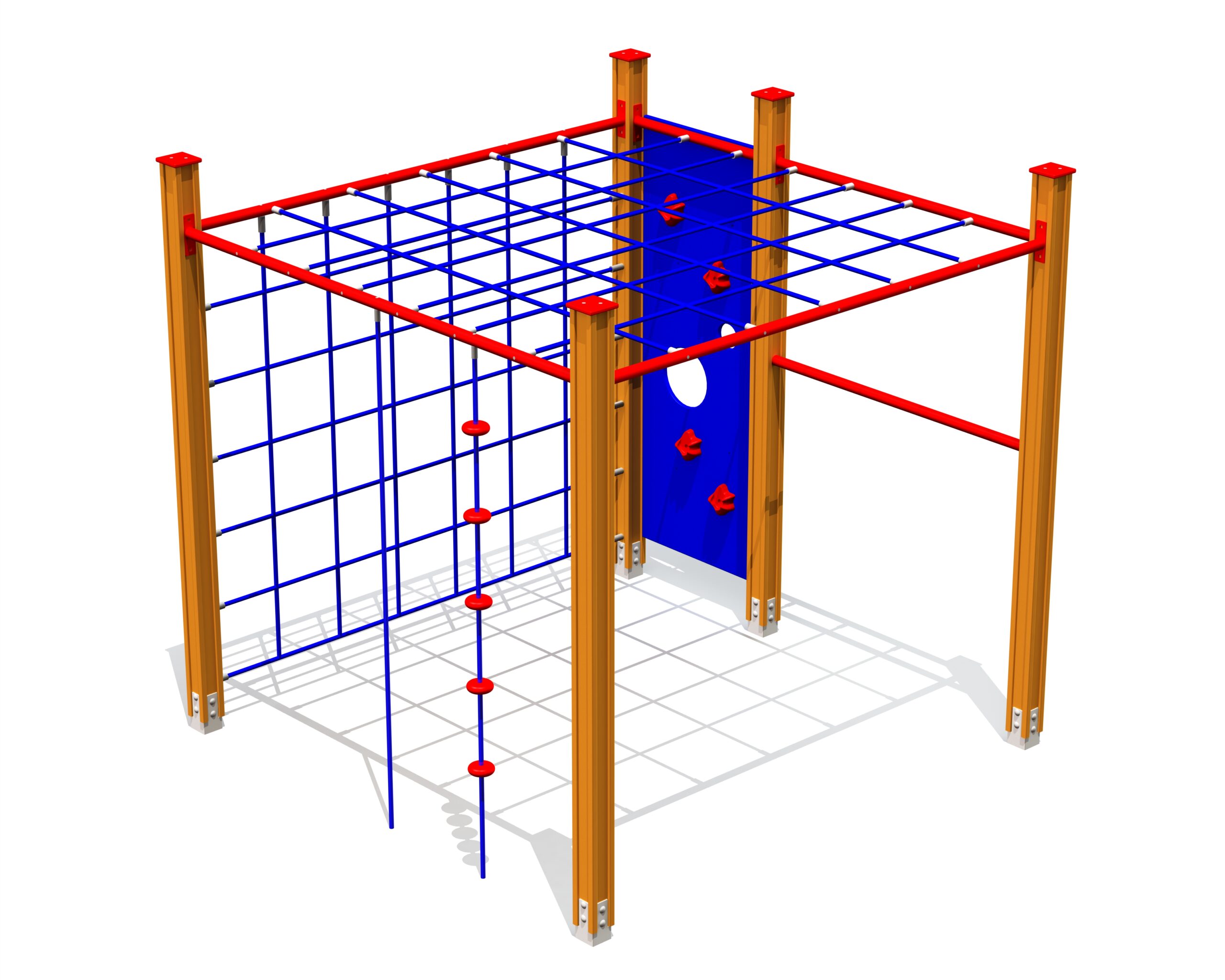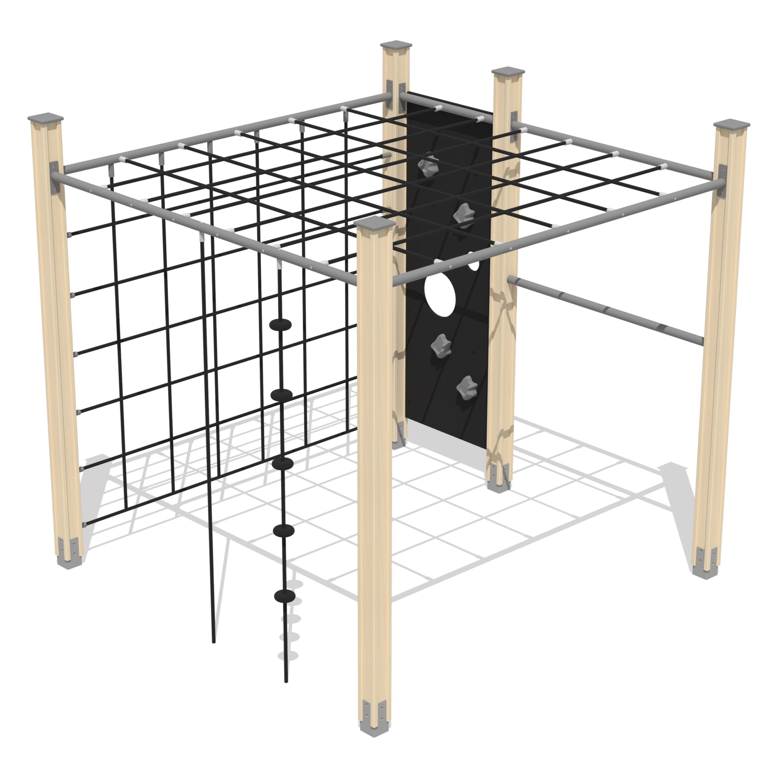 Produkten är utvecklad för lekplatser, förskolegårdar och andra offentliga utemiljöer där utrustningen behöver tåla regelbunden användning över tid. Modellen är utformad för klättring och utmaning i olika nivåer, vilket stödjer styrka, balans och koordination. Mått enligt specifikation: cirka 2,2 x 2,2 x 2,16 m. Rekommenderad ålder: 4+. En hållbar lösning för långsiktig drift och trygg användning i offentlig utemiljö.