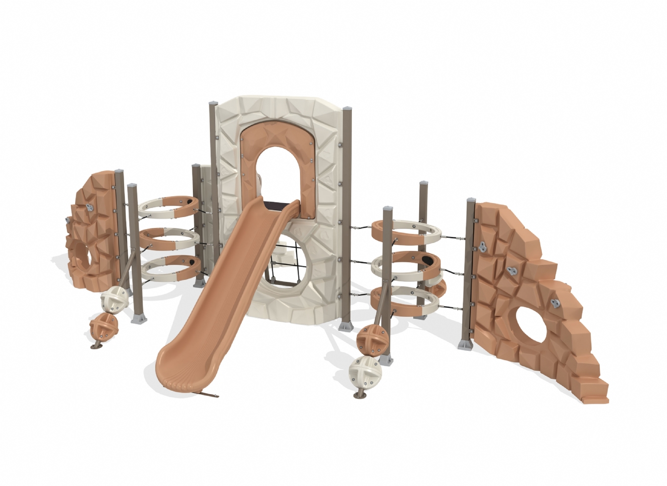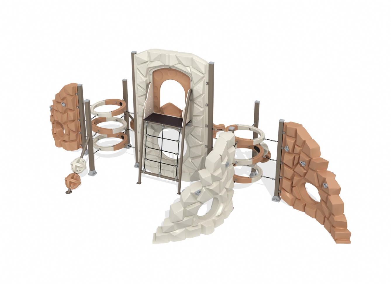 Klätterställning Quinora i metallprofil och polyeten för offentlig miljö.