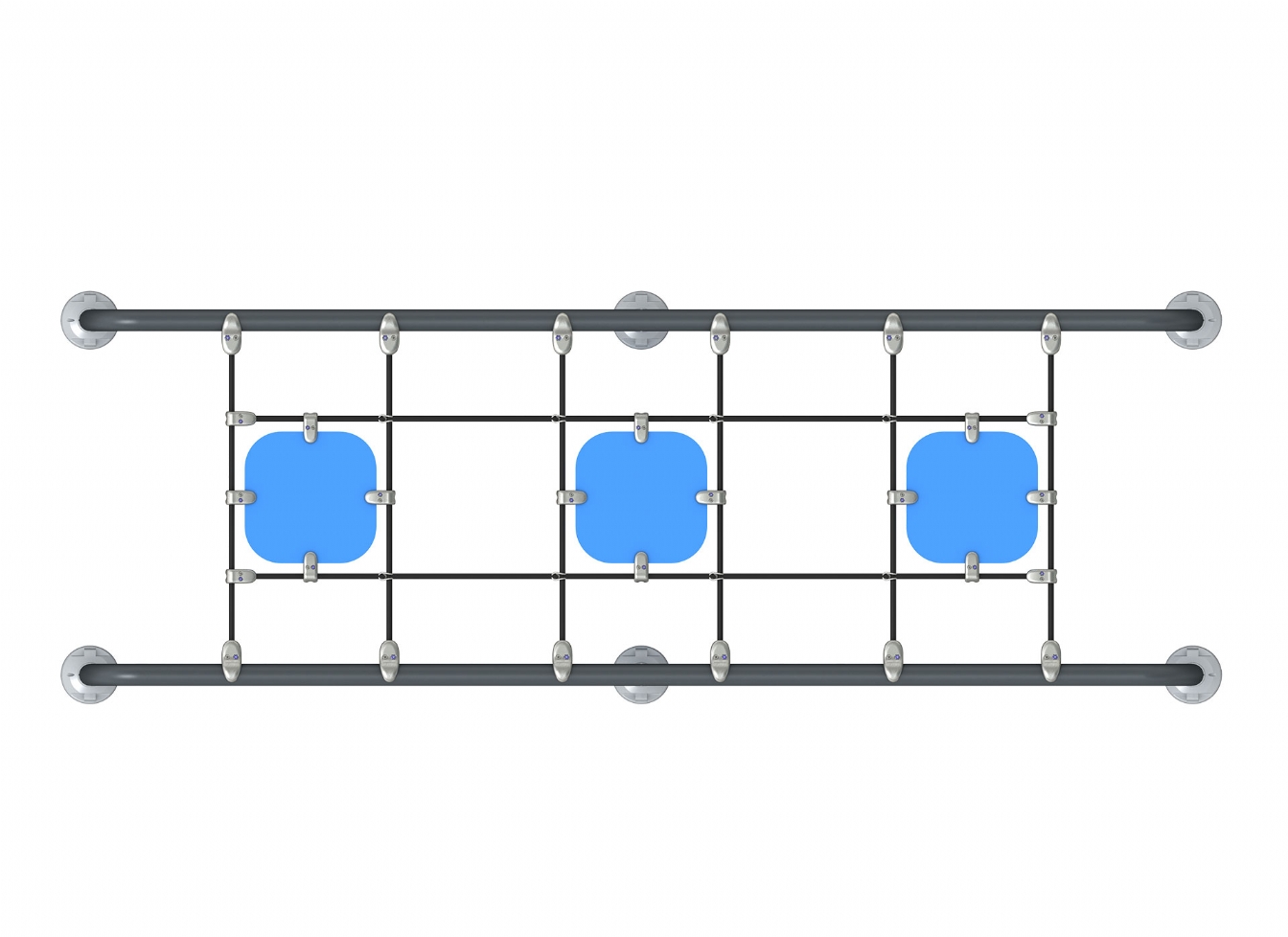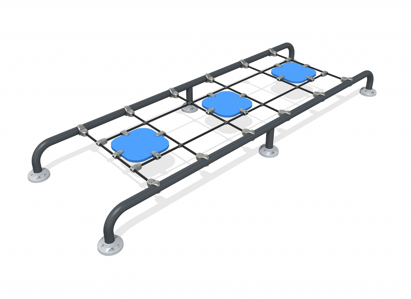 Klätterställning Selina är utvecklad för lekplatser där fokus ligger på klättring, balans och motorisk utveckling. Produkten har bredd 316 cm, djup 113 cm och höjd 29 cm. Specifikationen omfattar säkerhetszon L 616 x W 412. Utförandet i stålvajer, polykarbonat, trä och marinplywood ger en tålig konstruktion som lämpar sig för återkommande användning i krävande miljöer. Den är anpassad för upp till 2 barn och rekommenderad ålder 3-6.