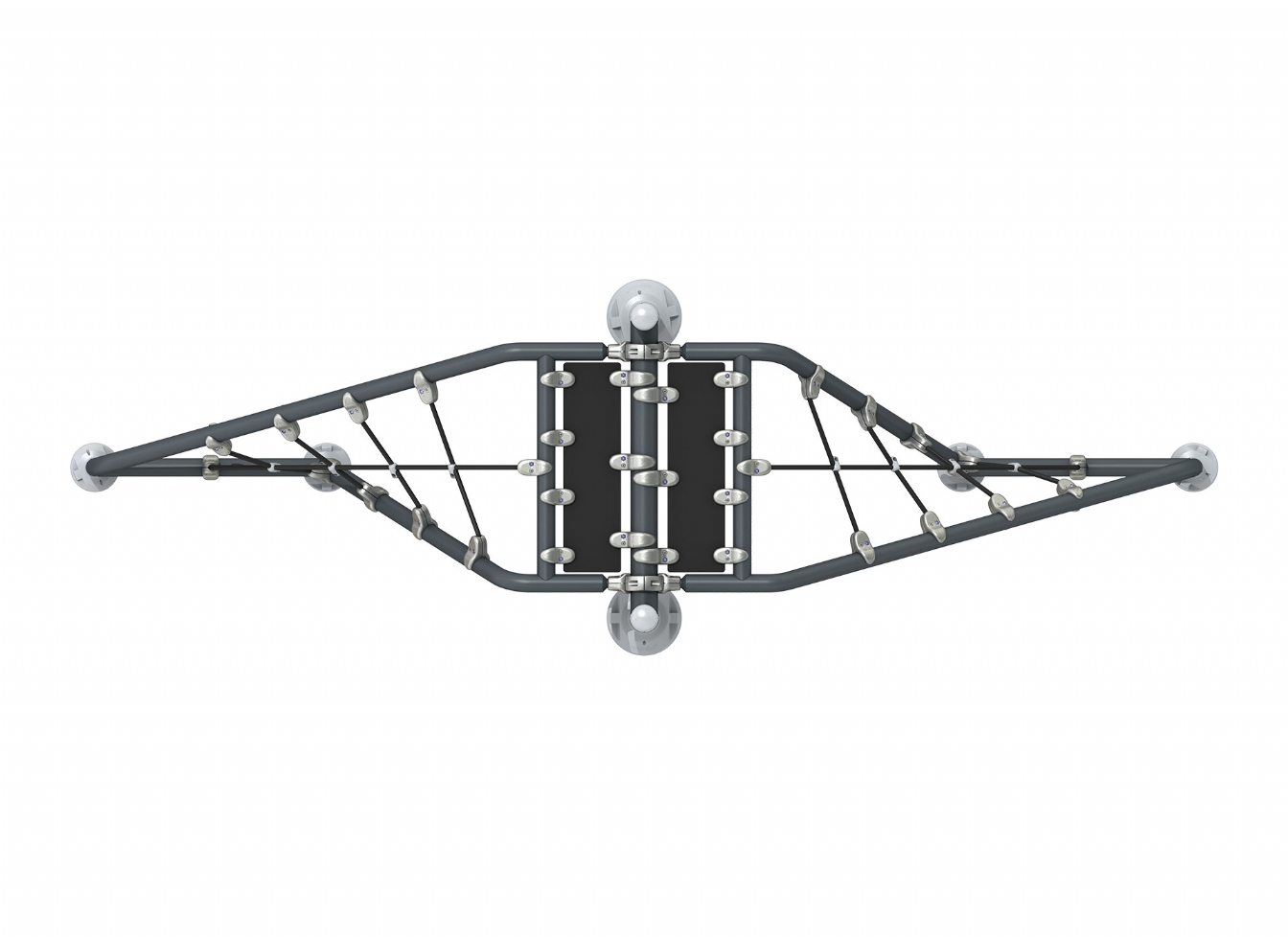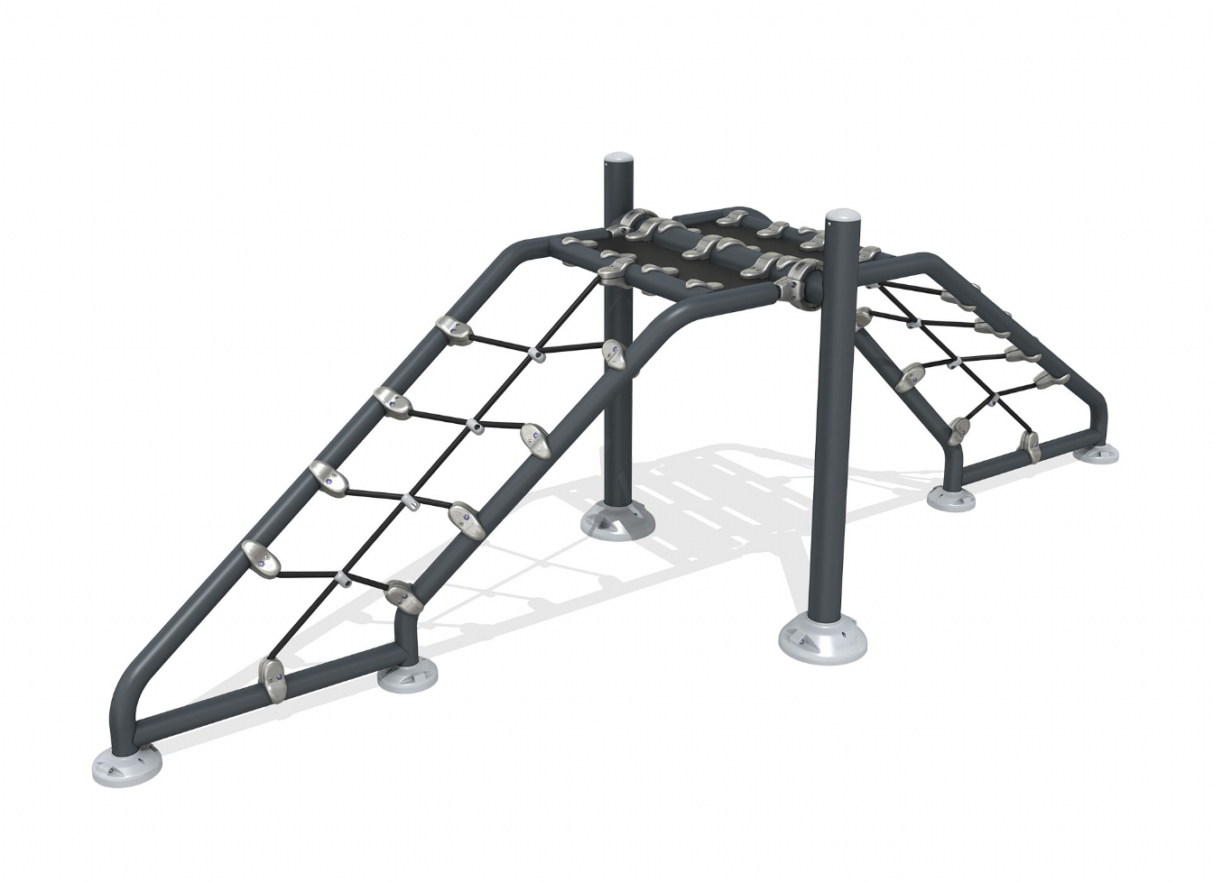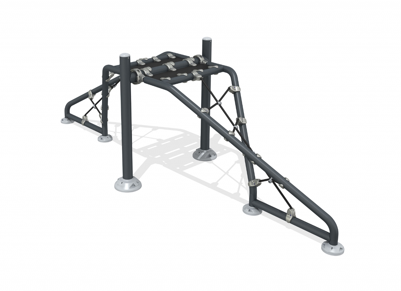 Klätterställning Selola i stålvajer, polykarbonat och trä för offentlig miljö.