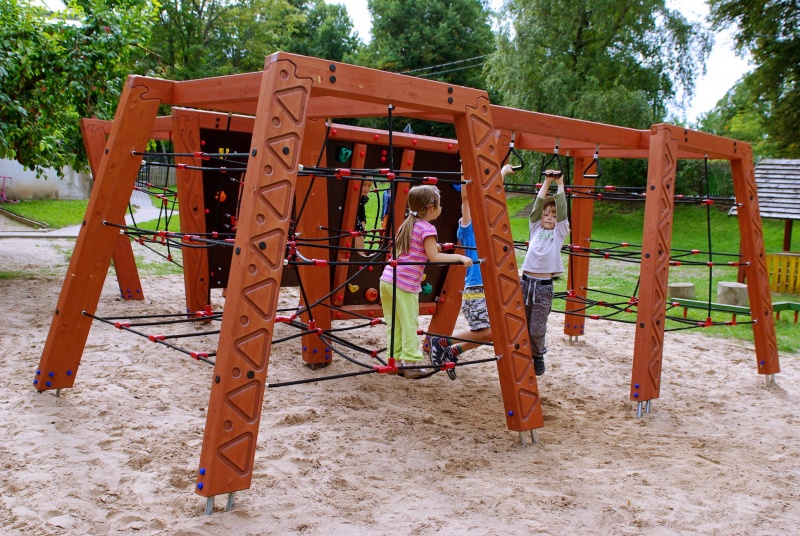 Klätterställning i AMAZON-serien för offentlig utemiljö som stödjer klättring, balans och koordination.