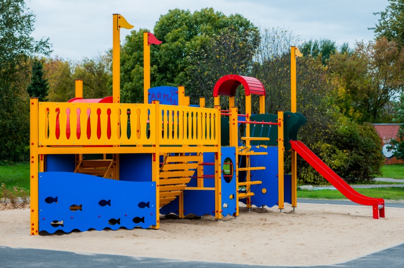 Mycket stort lekskepp som rymmer många barn och möjliggör intensiv rollekslek. Skapat för stora lekplatser.