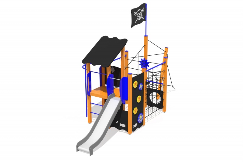 Pirattematiserad lekbåt för aktiv lek, samarbete och fantasifulla äventyr på lekplatsen.