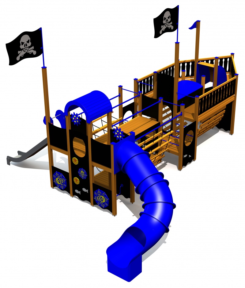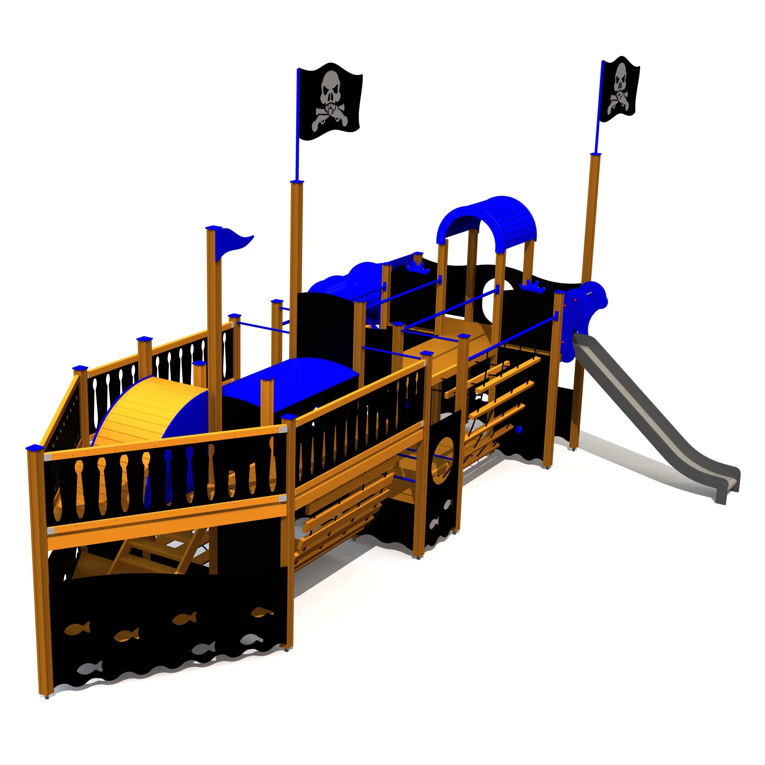 Pirattematiserad lekbåt för aktiv lek, samarbete och fantasifulla äventyr på lekplatsen.