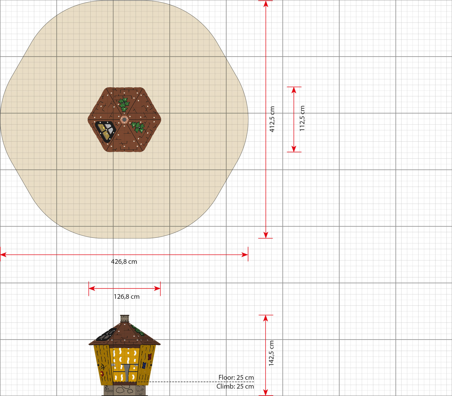 Lekhus Alfred skapar en tydlig miljö för rollekar där barn utvecklar fantasi, kommunikation och samspel. Produkten fungerar lika bra för fri lek som för pedagogiska aktiviteter i utemiljö. Konstruktionen är robust och anpassad för daglig användning. Mått (L x B x H): 127 cm x 113 cm x 143 cm. Max fallhöjd: 25 cm. Rekommenderad ålder: Från 0 år.