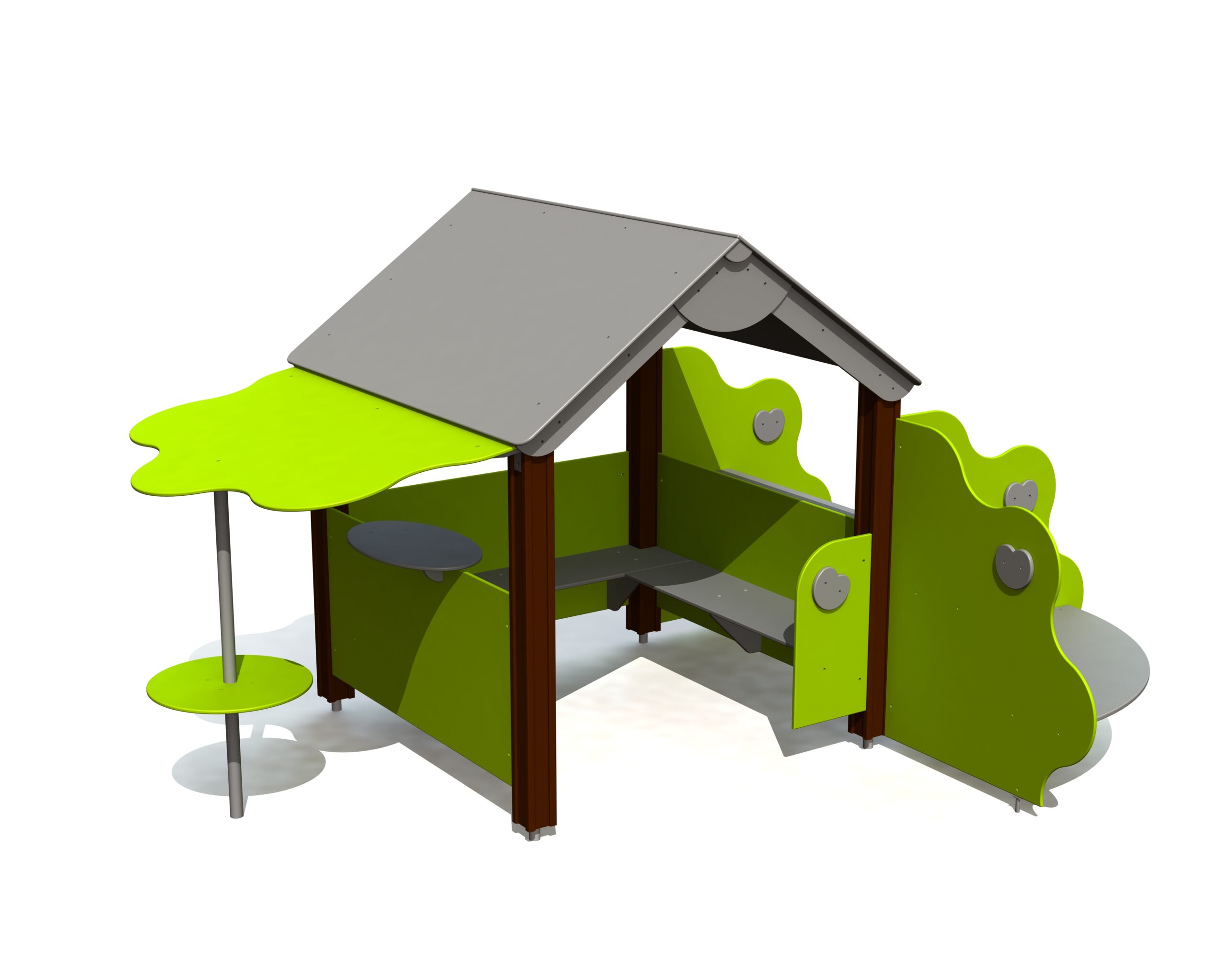 Produkten är utvecklad för lekplatser, förskolegårdar och andra offentliga utemiljöer där utrustningen behöver tåla regelbunden användning över tid. Modellen skapar en samlingspunkt för rollekar, socialt samspel och kreativ utforskning i utemiljön. Mått enligt specifikation: cirka 3,17 x 2,36 x 1,76 m. Rekommenderad ålder: 1+. En hållbar lösning för långsiktig drift och trygg användning i offentlig utemiljö.