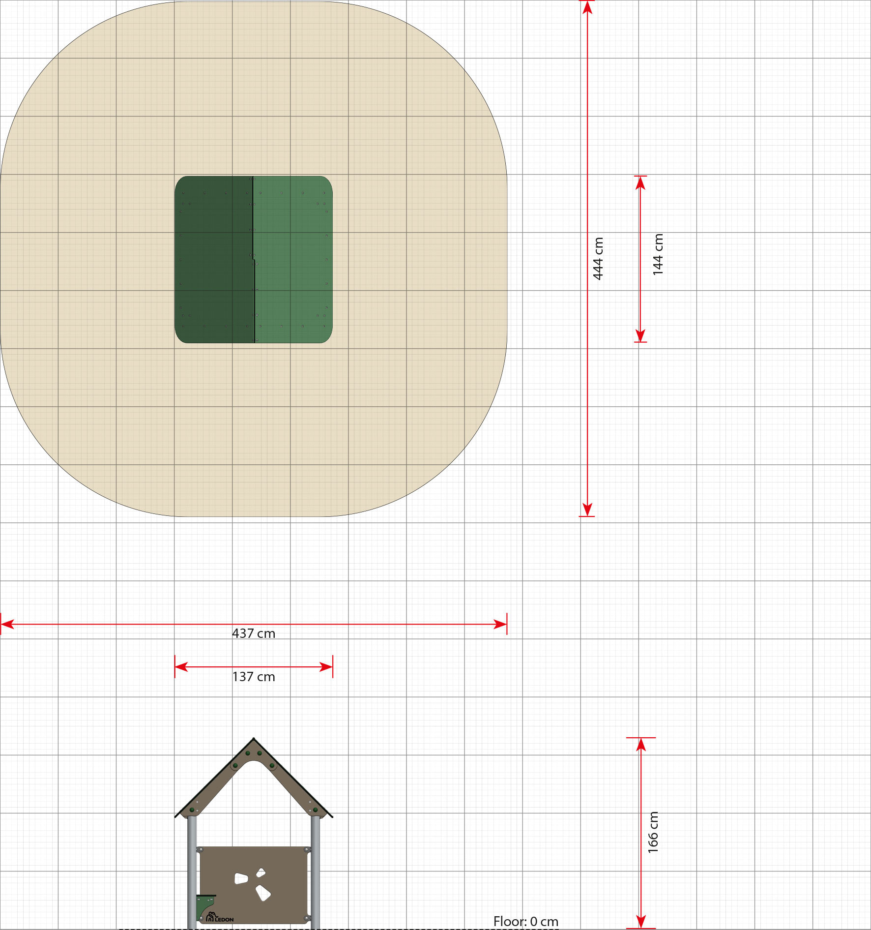Lekhus Beth skapar en tydlig miljö för rollekar där barn utvecklar fantasi, kommunikation och samspel. Produkten fungerar lika bra för fri lek som för pedagogiska aktiviteter i utemiljö. Konstruktionen är robust och anpassad för daglig användning. Mått (L x B x H): 144 cm x 137 cm x 166 cm. Max fallhöjd: 60 cm. Rekommenderad ålder: Från 2 år.