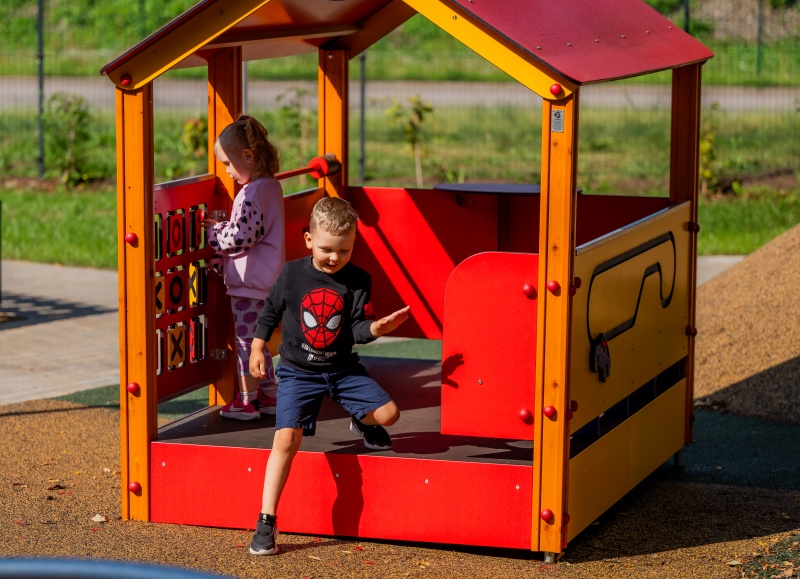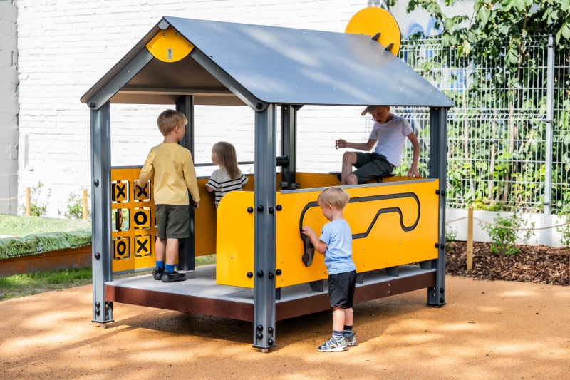 Den härliga lekstugan BUFFÉ kommer med aktivitetspaneler där barnen kan leka butik, tjata och även räkna, styra och träna motorik. Lekstugan har en lång bänk som bekvämt har plats för 6-12 barn.