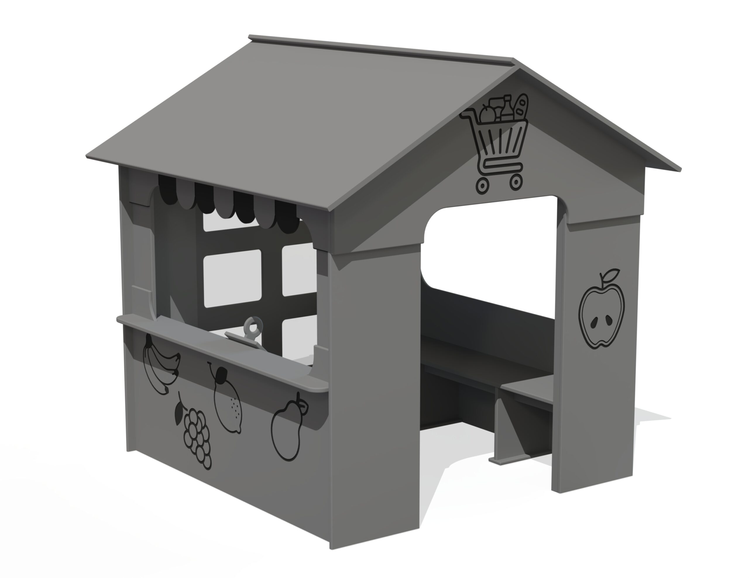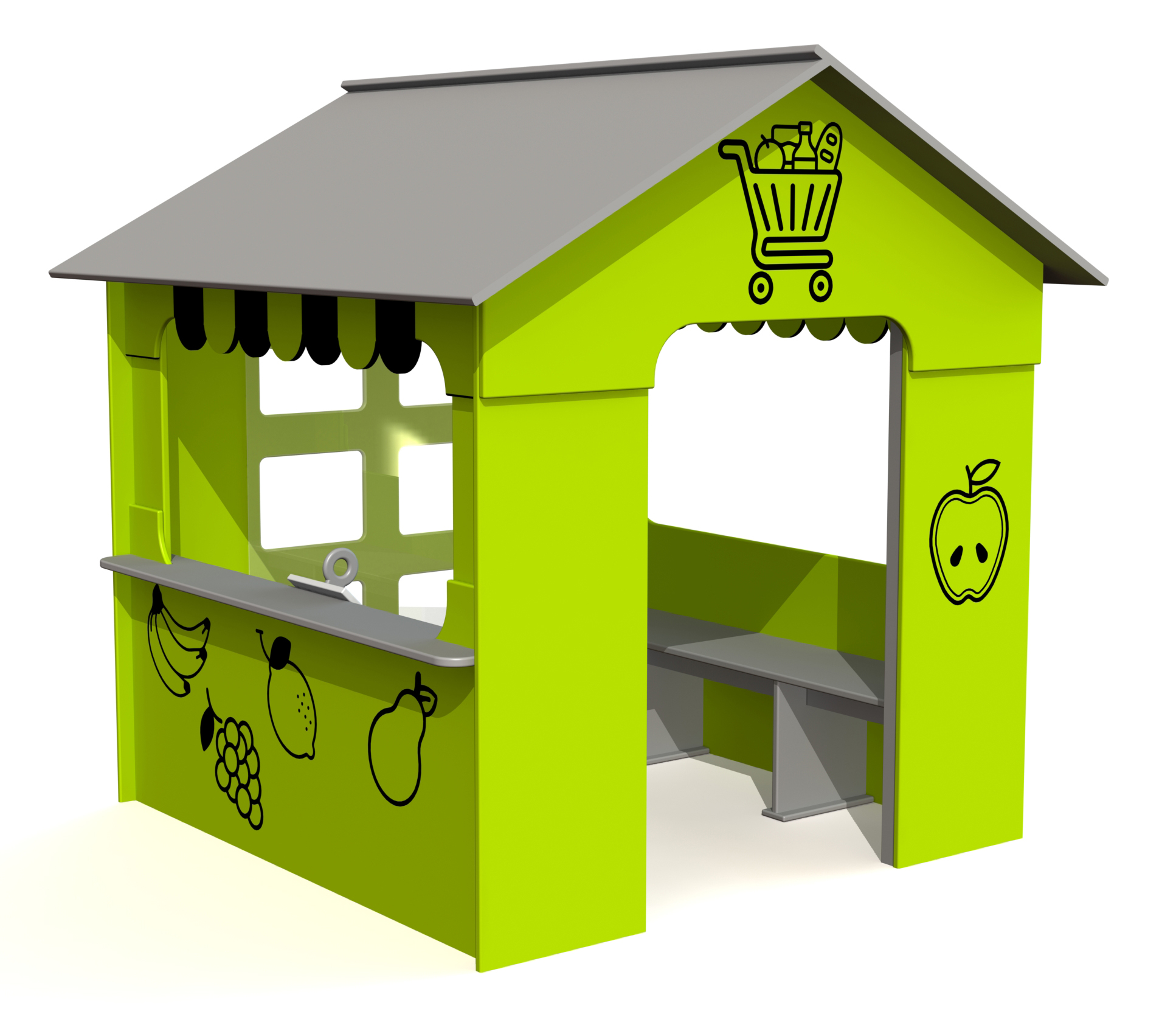 Produkten är utvecklad för lekplatser, förskolegårdar och andra offentliga utemiljöer där utrustningen behöver tåla regelbunden användning över tid. Modellen skapar en samlingspunkt för rollekar, socialt samspel och kreativ utforskning i utemiljön. Mått enligt specifikation: cirka 1,76 x 1,69 x 1,76 m. Rekommenderad ålder: 1+. En hållbar lösning för långsiktig drift och trygg användning i offentlig utemiljö.