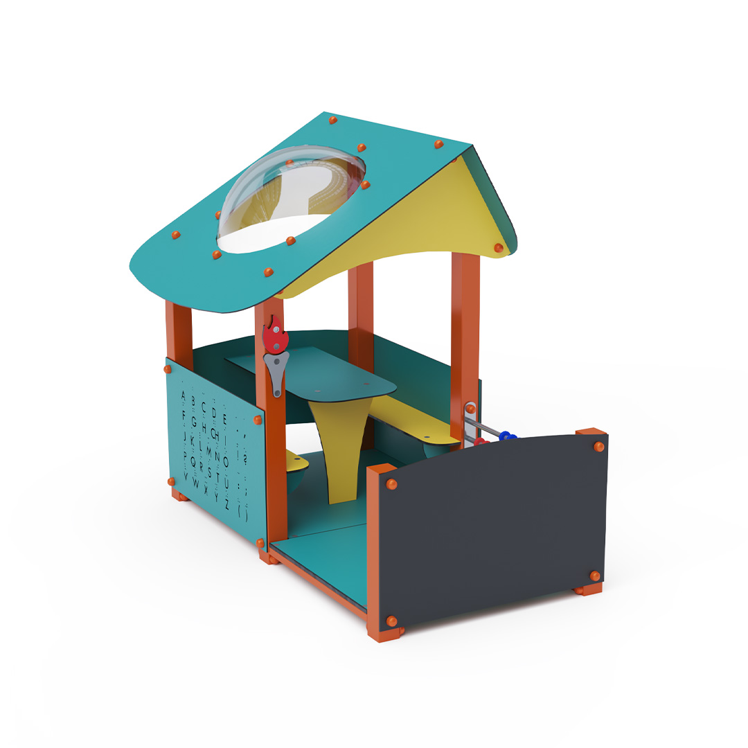 Lekhus Nio är en lekhus avsedd för offentlig utomhusmiljö såsom lekplatser, skolor, förskolor, parker eller gemensamma gårdsmiljöer. Produkten är utförd i galvanized and powder-coated steel, hpl with thicknesses of 6mm and 10mm, hdpe, stainless steel fasteners, stainless steel abacus, vilket ger en tålig konstruktion för daglig användning utomhus. Elementets mått är 1.25 x 1.9 x 1.5 meter. Rekommenderad ålderskategori är from 1 to 14 years.