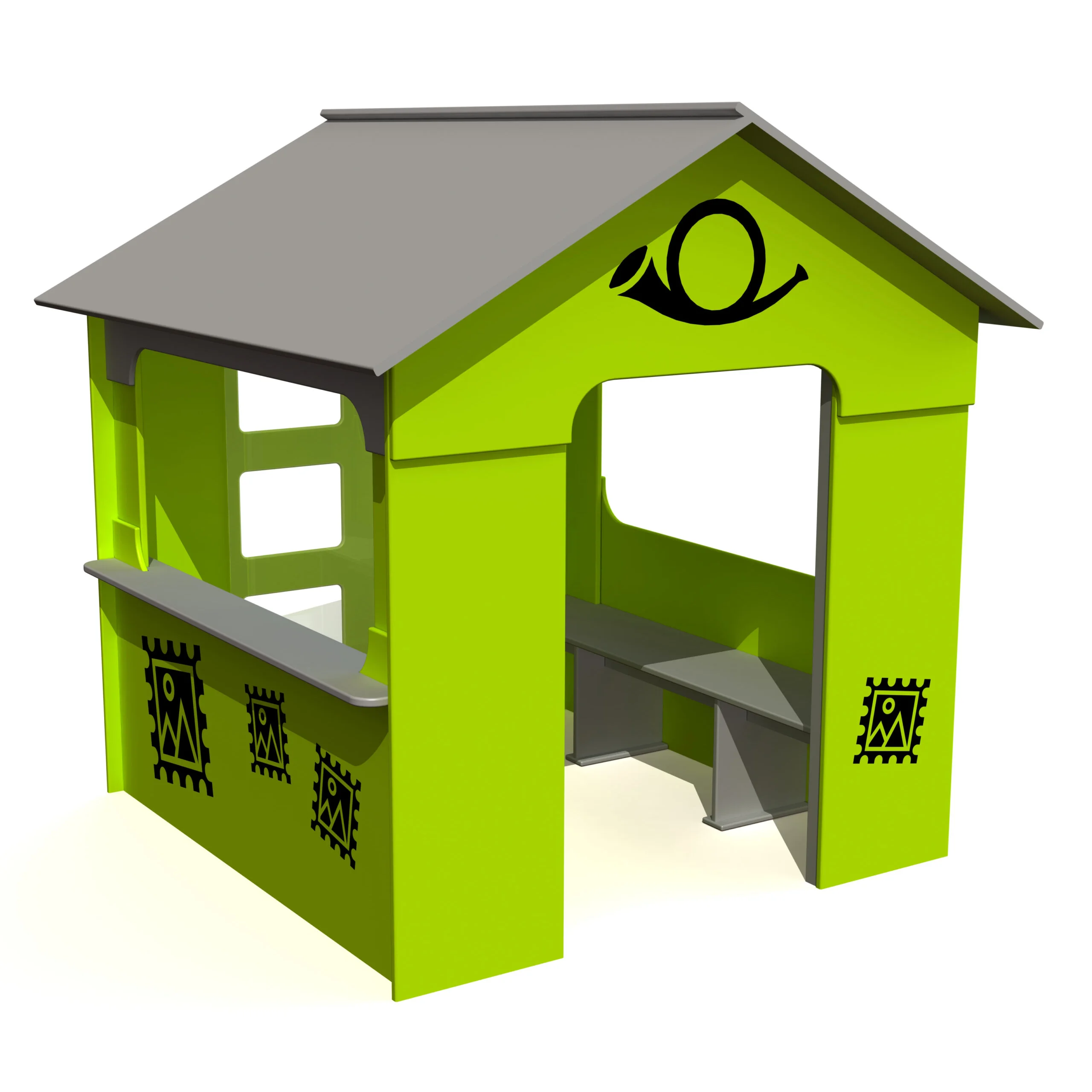 Produkten är utvecklad för lekplatser, förskolegårdar och andra offentliga utemiljöer där utrustningen behöver tåla regelbunden användning över tid. Modellen skapar en samlingspunkt för rollekar, socialt samspel och kreativ utforskning i utemiljön. Mått enligt specifikation: cirka 1,76 x 1,69 x 1,74 m. Rekommenderad ålder: 1+. En hållbar lösning för långsiktig drift och trygg användning i offentlig utemiljö.