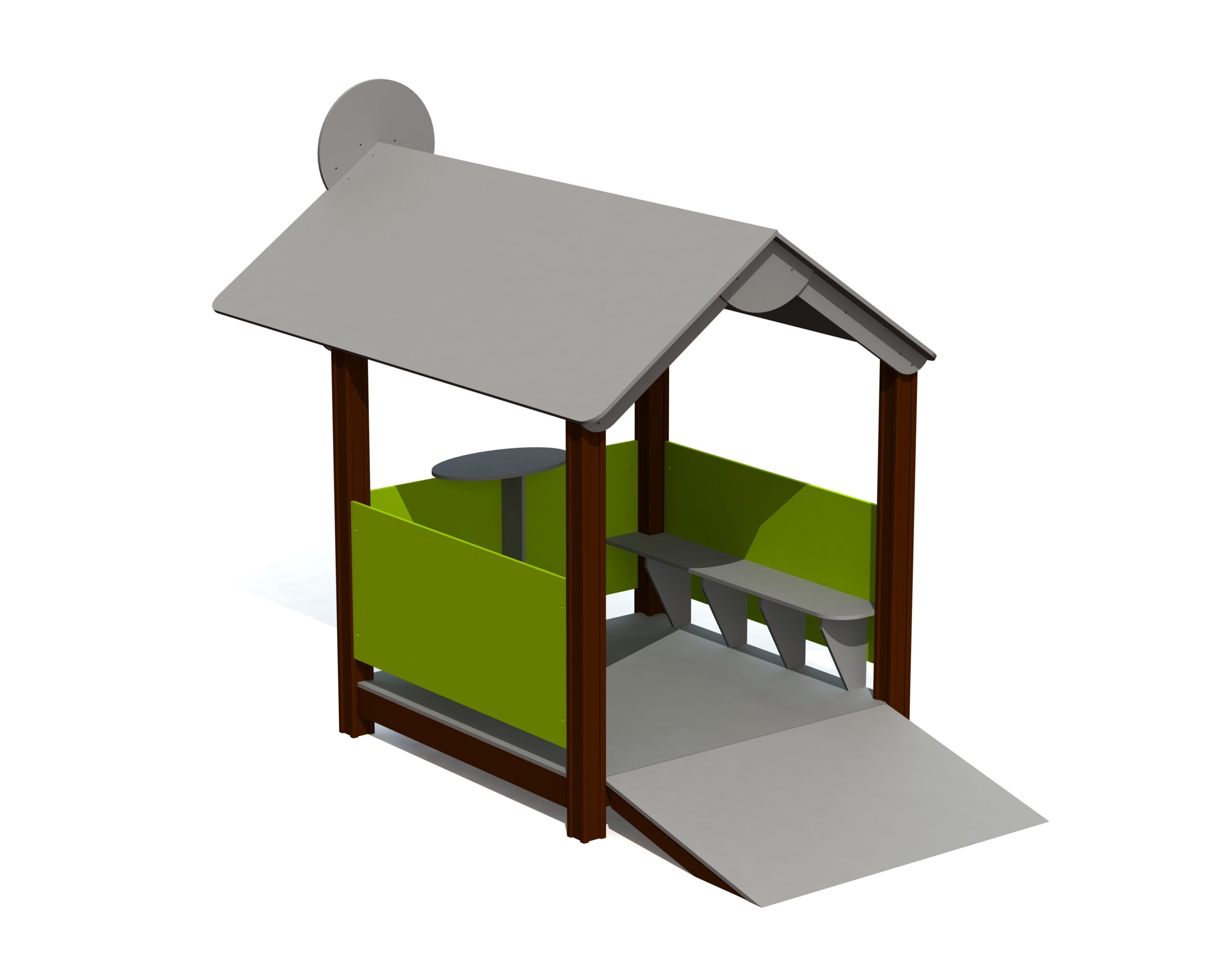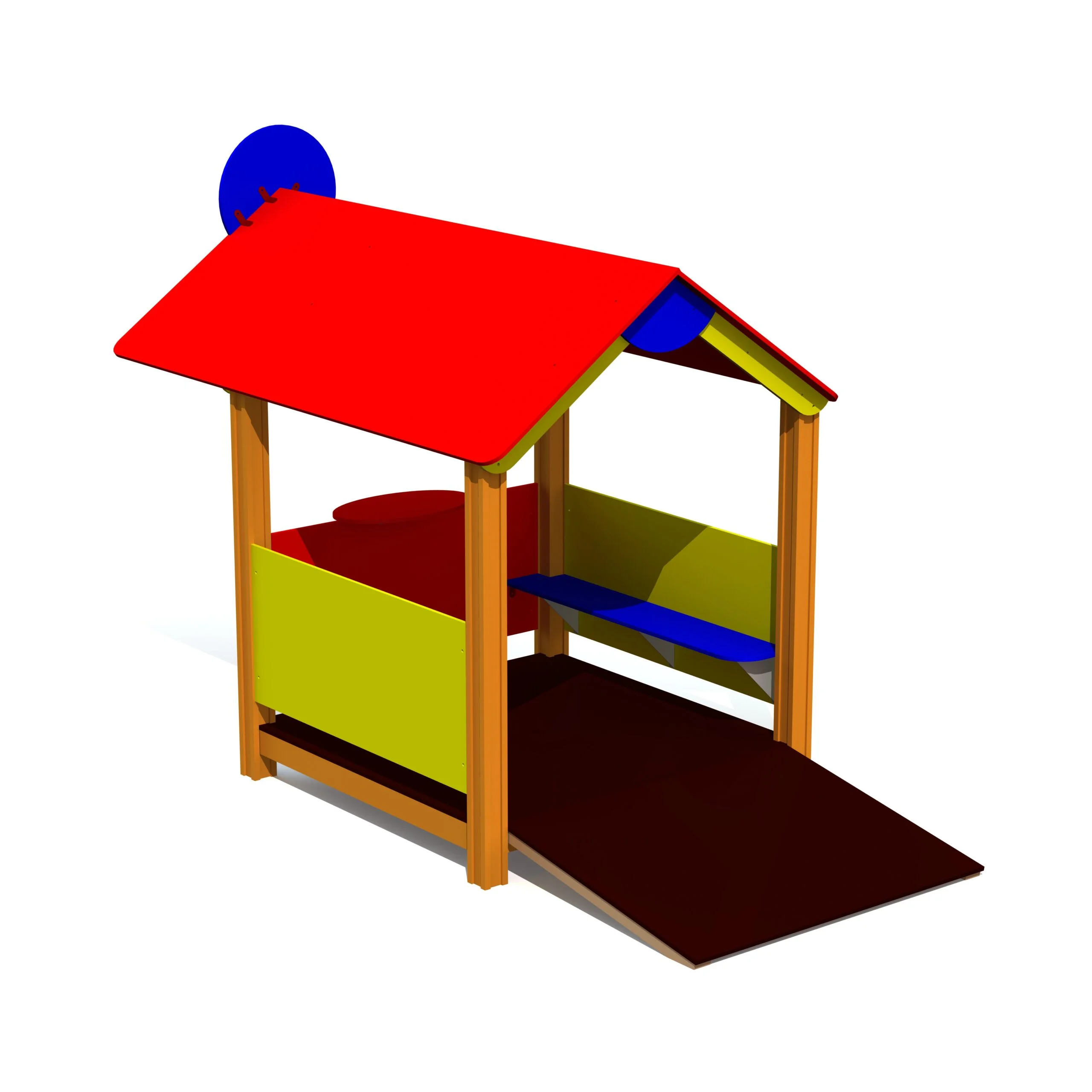 Stor lekstuga med ramp, en och ett lekbord som även passar barn med särskilda behov.