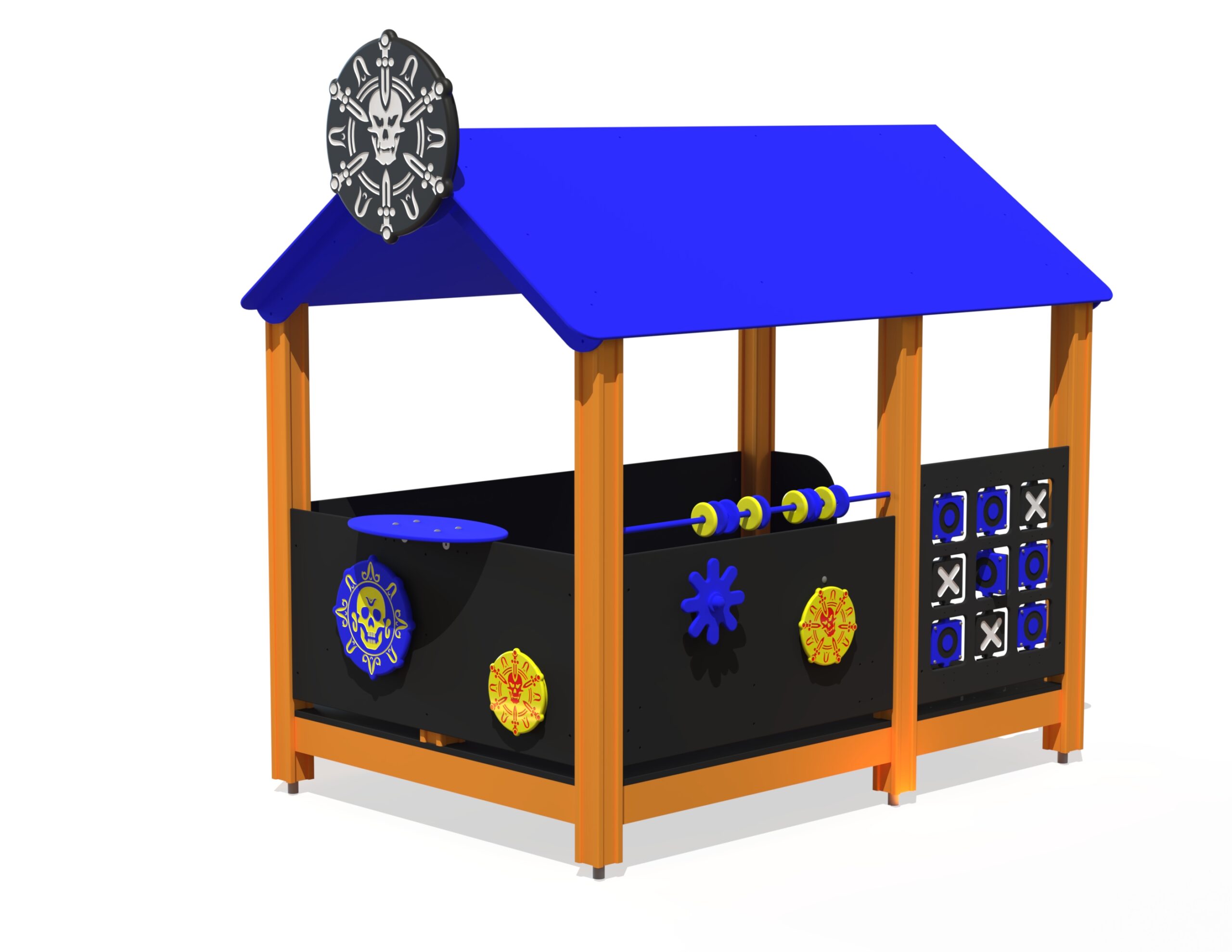 Pirattematiserad lekhus för aktiv lek, samarbete och fantasifulla äventyr på lekplatsen.