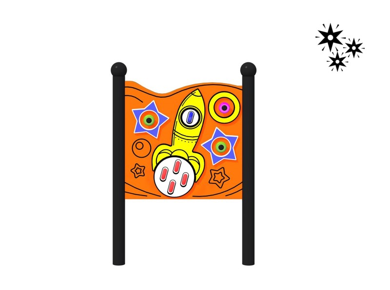 Lekpanel Tavla Raket 1 Lumo för offentlig utemiljö med fokus på säker användning, robust konstruktion och lång livslängd vid daglig drift. Material: pulverlackerat stål och HDPE.