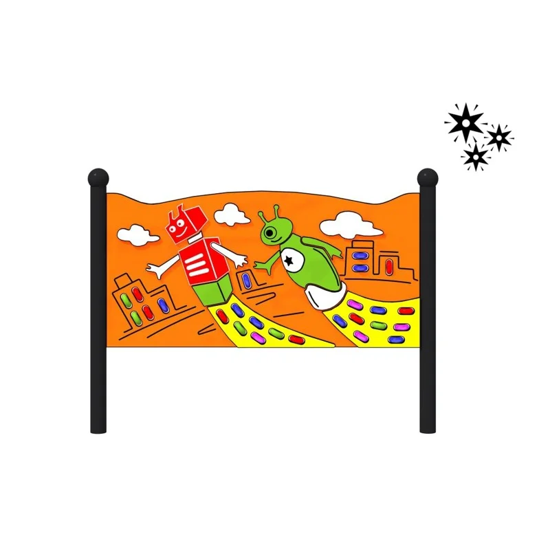 Lekpanel Tavla Robotar 3 LUMO för offentlig utemiljö med fokus på säker användning, robust konstruktion och lång livslängd vid daglig drift. Material: pulverlackerat stål och HDPE.