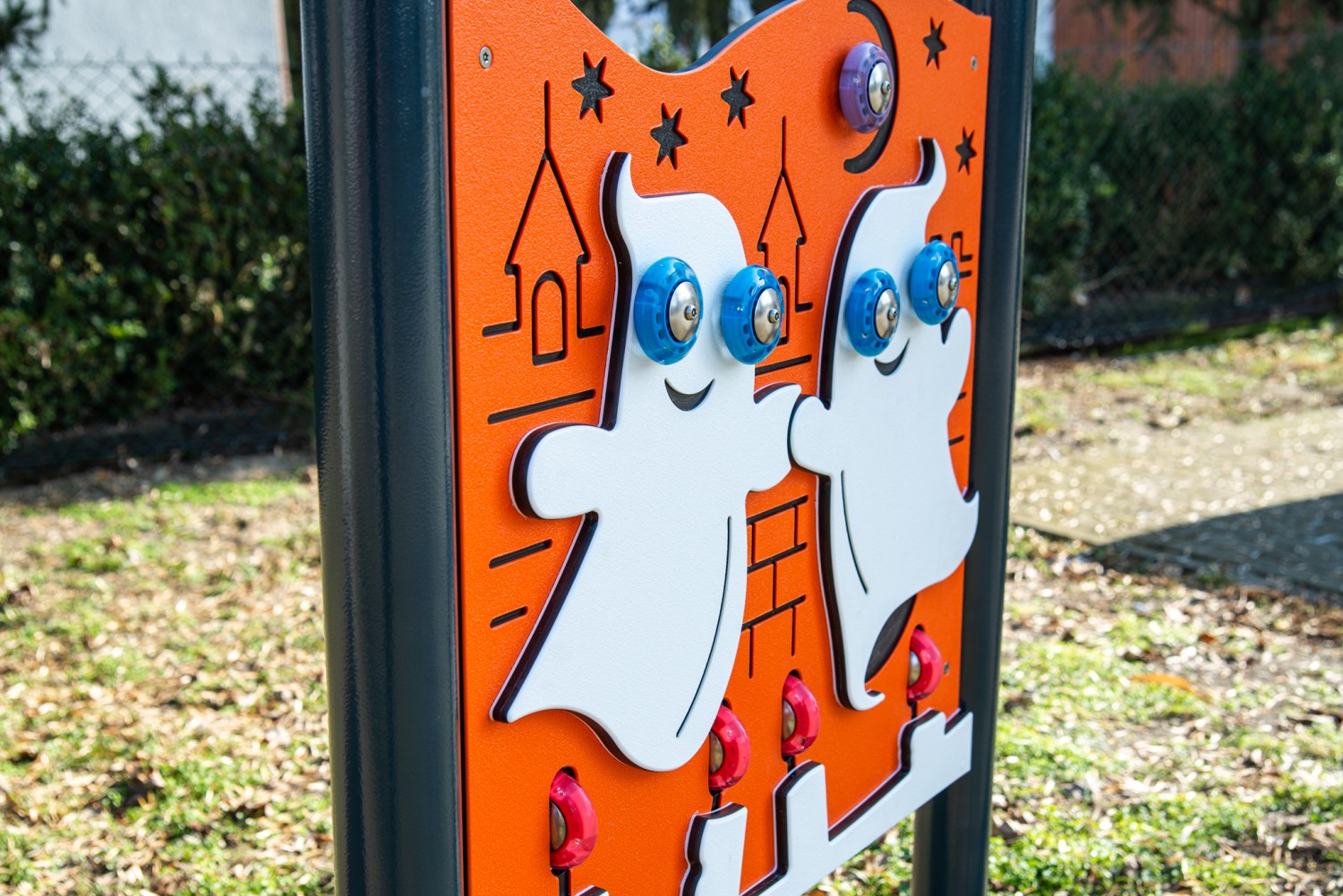 Lekpanel Tavla Spöken 1 Lumo är utvecklad för offentliga lek- och utemiljöer där säkerhet, hållbarhet och driftsäkerhet är avgörande. Produkten stimulerar rörelse, koordination och social interaktion samt ger ett tydligt lekvärde i offentliga miljöer. Vanliga material i utförandet är pulverlackerat stål och HDPE. Konstruktionen är anpassad för daglig användning i parker, skolor, förskolor och bostadsområden med långsiktigt underhåll i fokus. Kontakta oss gärna för rådgivning om placering, underlag, montage och val av utförande.