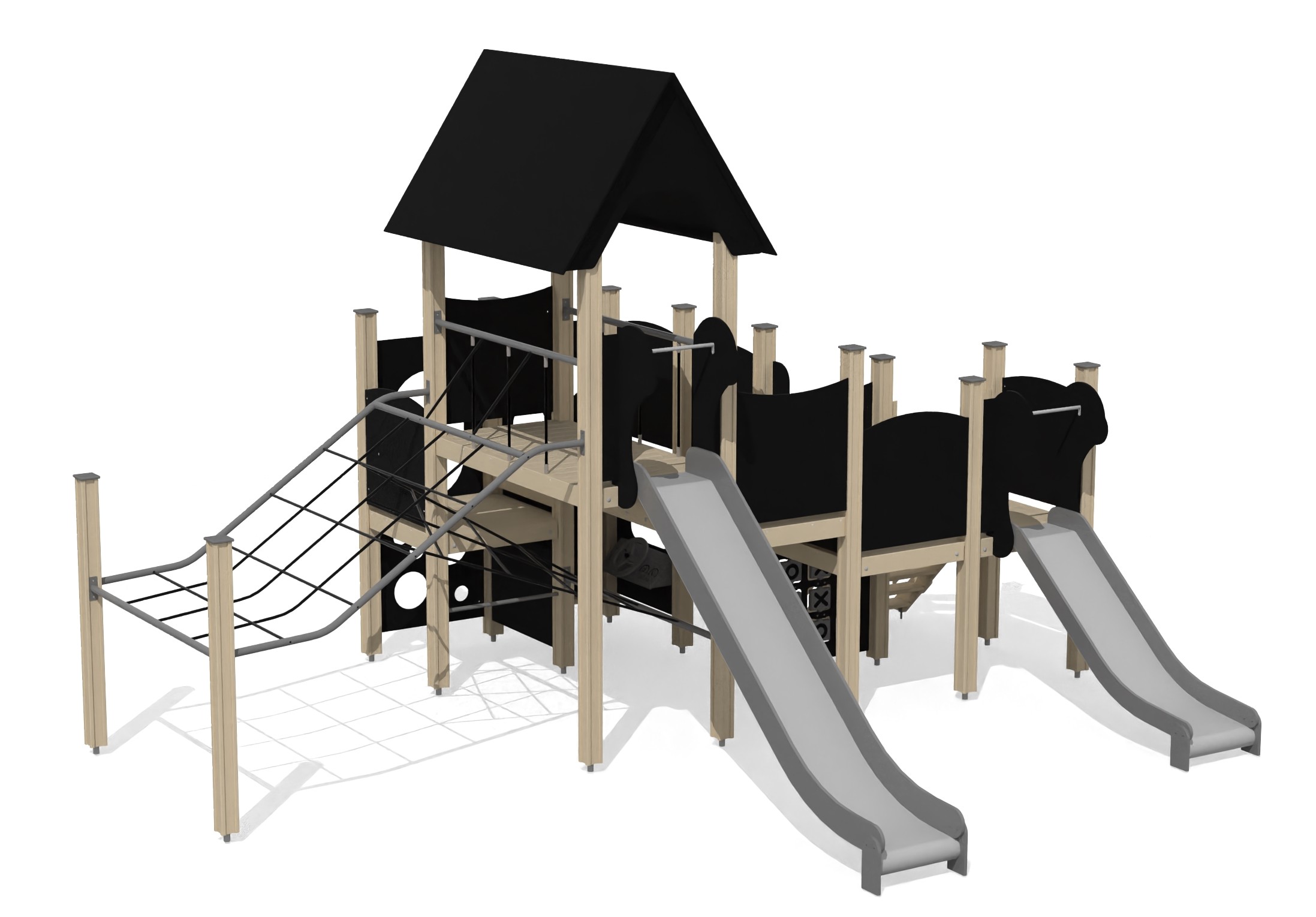 Lekställning Aldon är en lekställning som tagits fram för lekplatser, förskolegårdar och andra offentliga utemiljöer. Modellen kombinerar flera lekmoment och ger barn möjlighet till varierad aktivitet, samspel och motorisk utveckling. Konstruktionen är avsedd för regelbunden användning över tid och passar projekt där man vill kombinera lekvärde med hållbar drift. Mått enligt specifikation: cirka 5,65 x 4,98 x 3,72 m. Rekommenderad ålder: 1+/4+. En praktisk lösning för långsiktig och trygg lekmiljö.